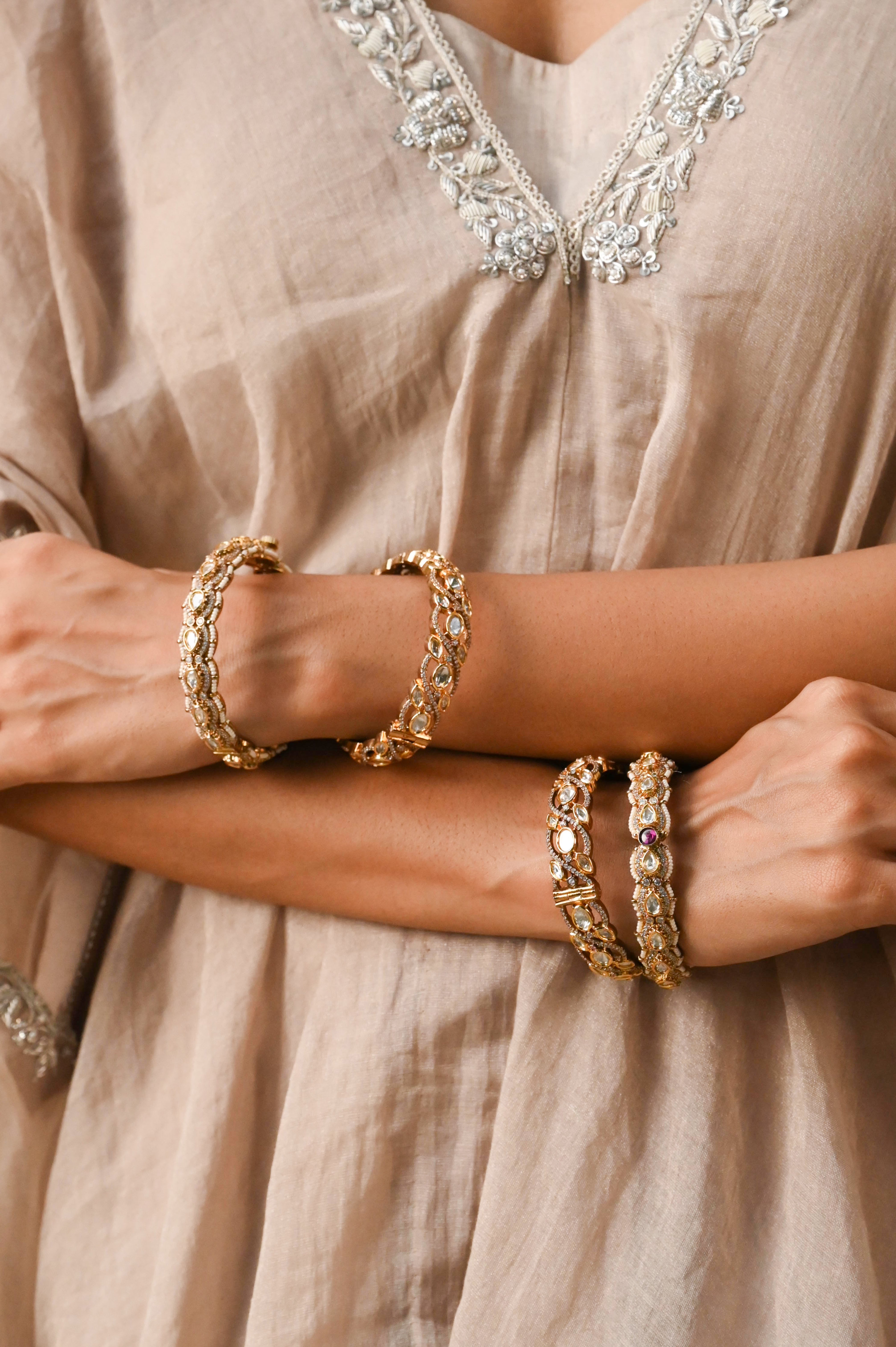 Aarvika Polki Kundan Openable Bangle- Set of 2