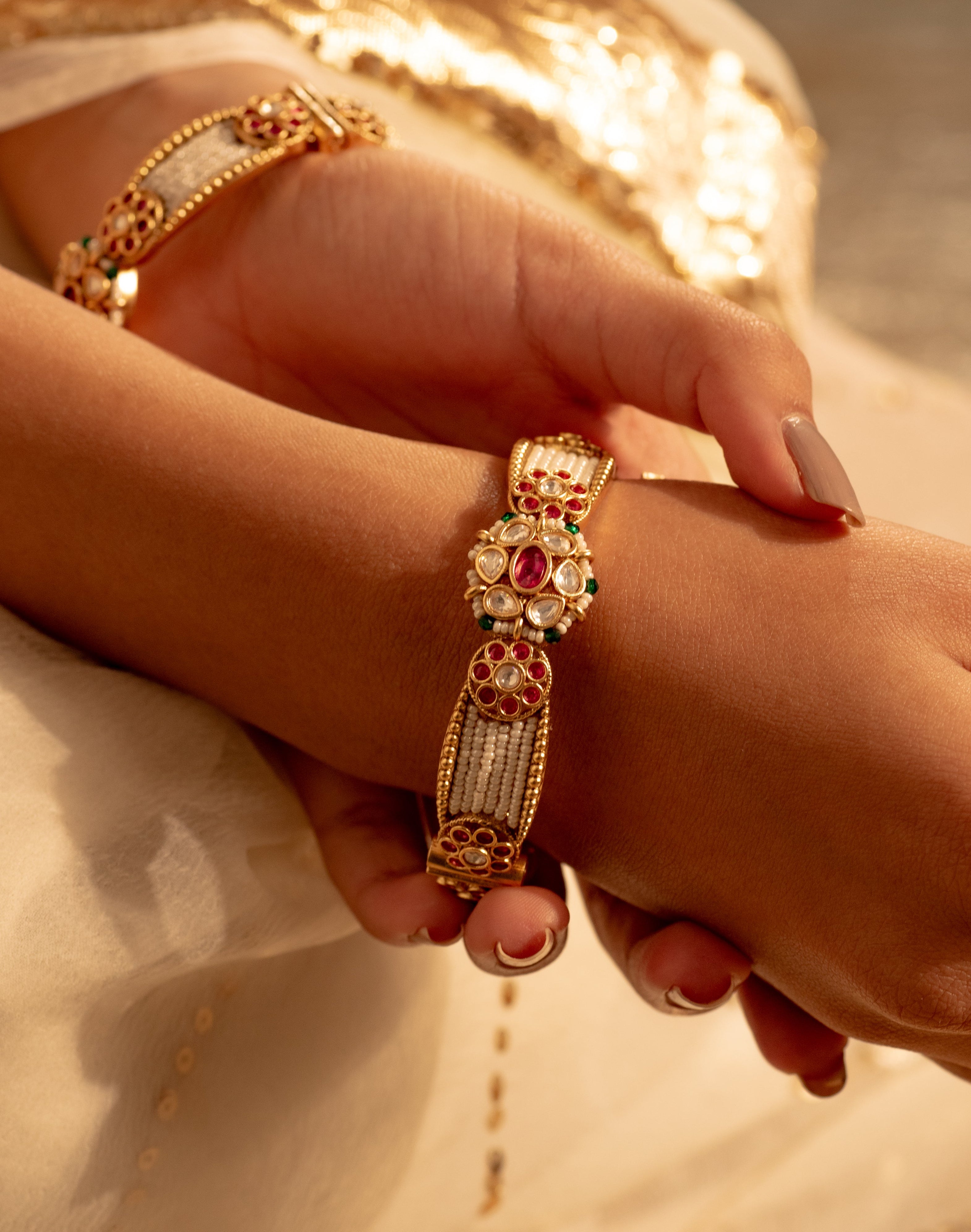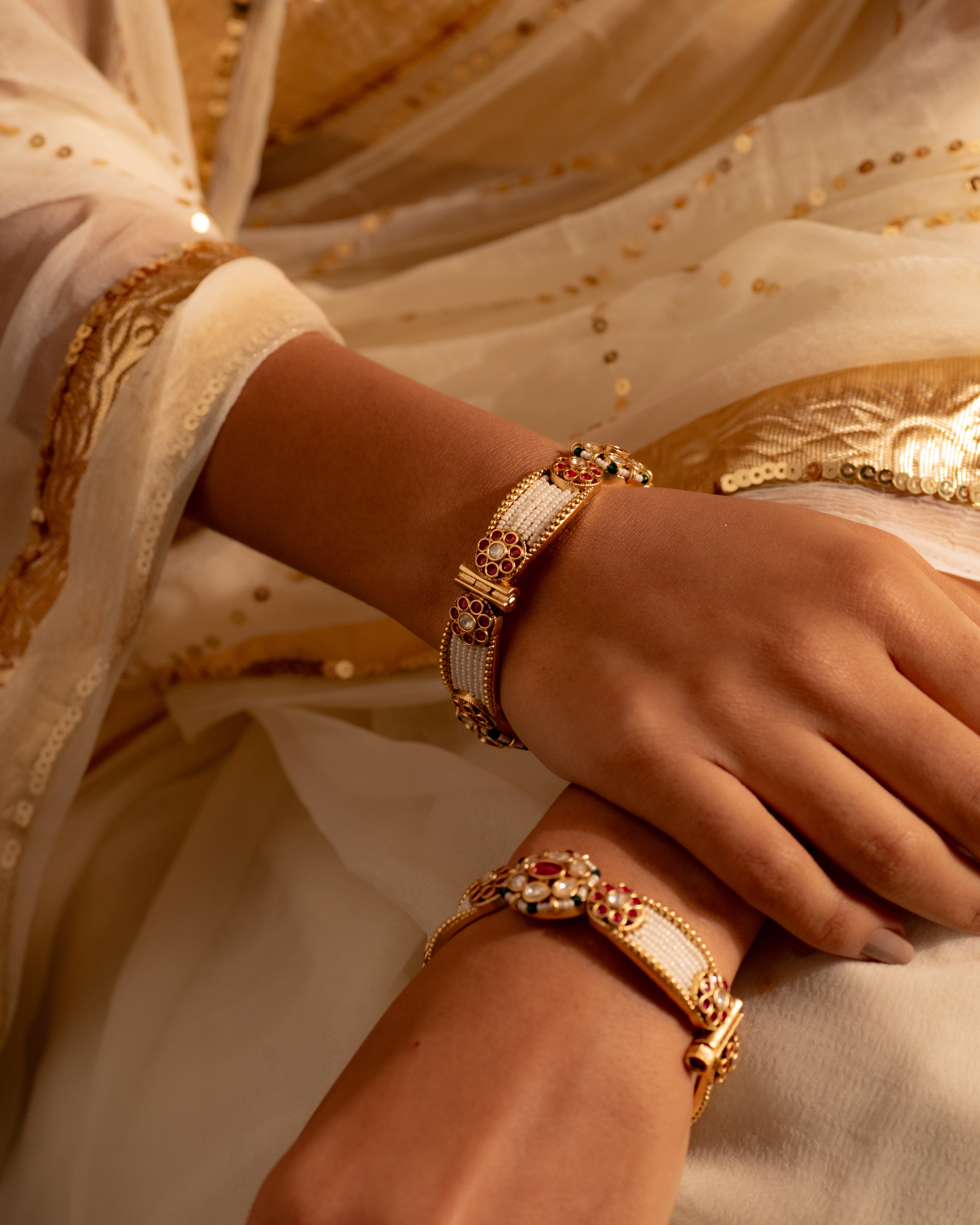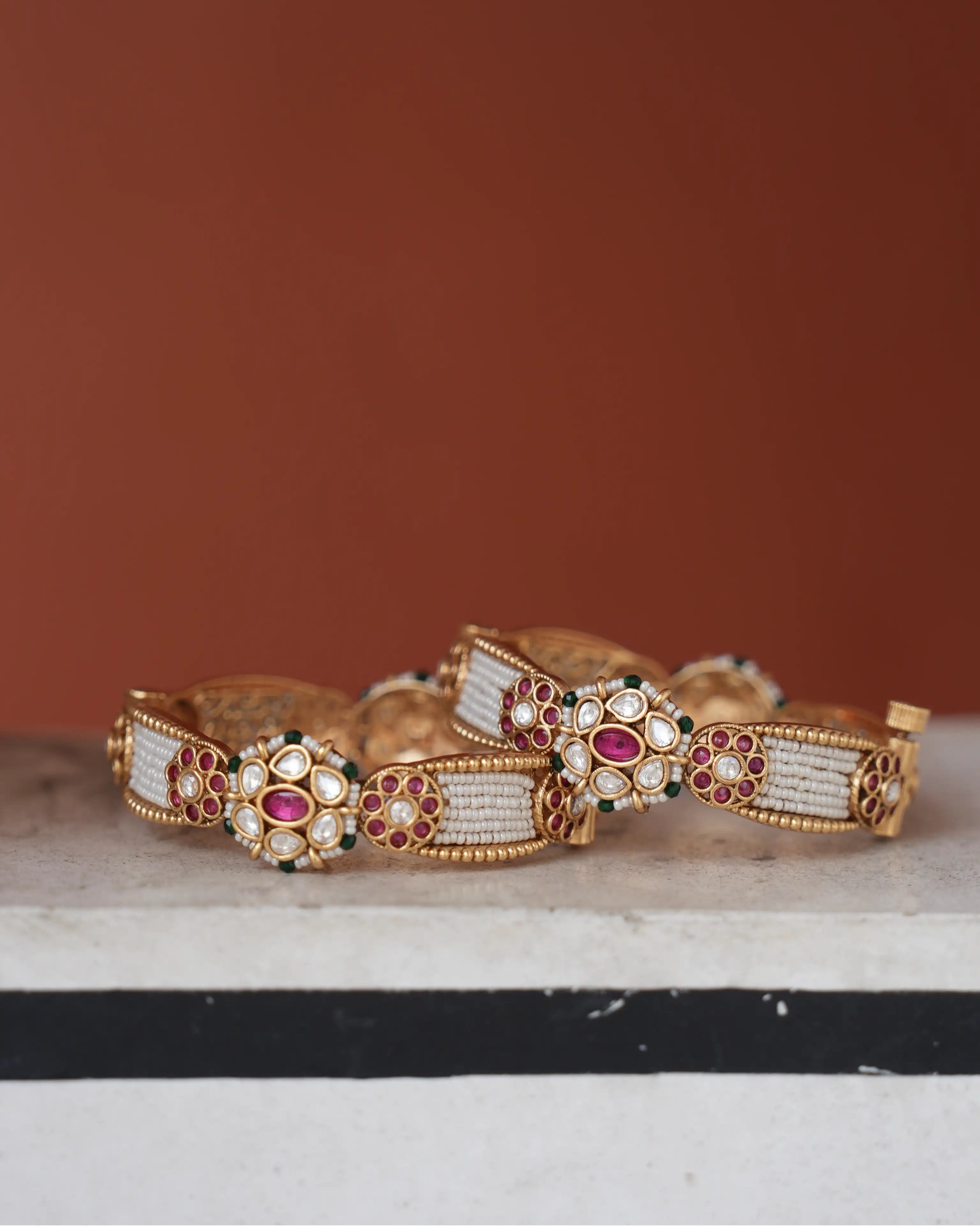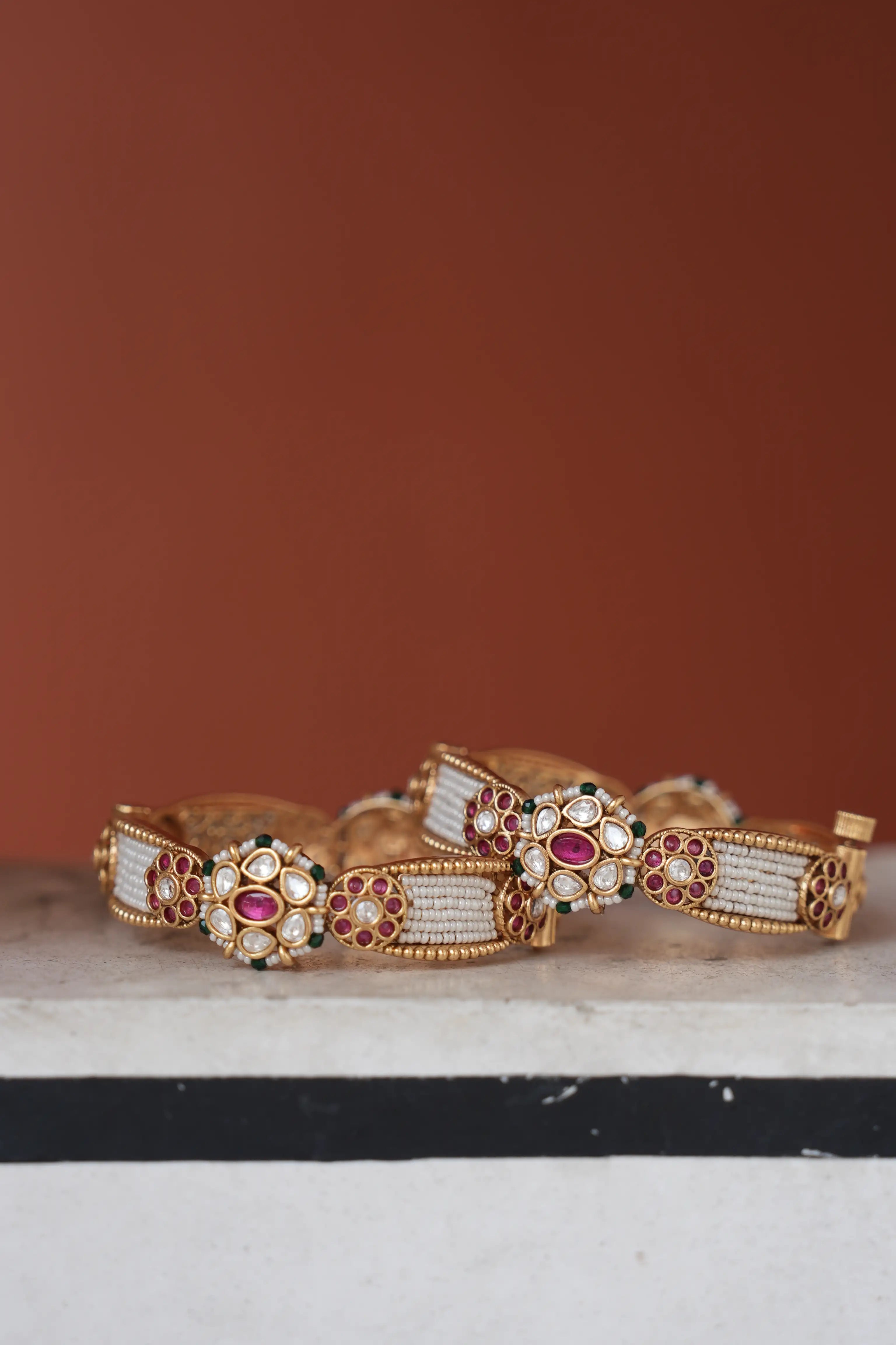 Raha Antique Pearl Openable Bangles- Set of 2