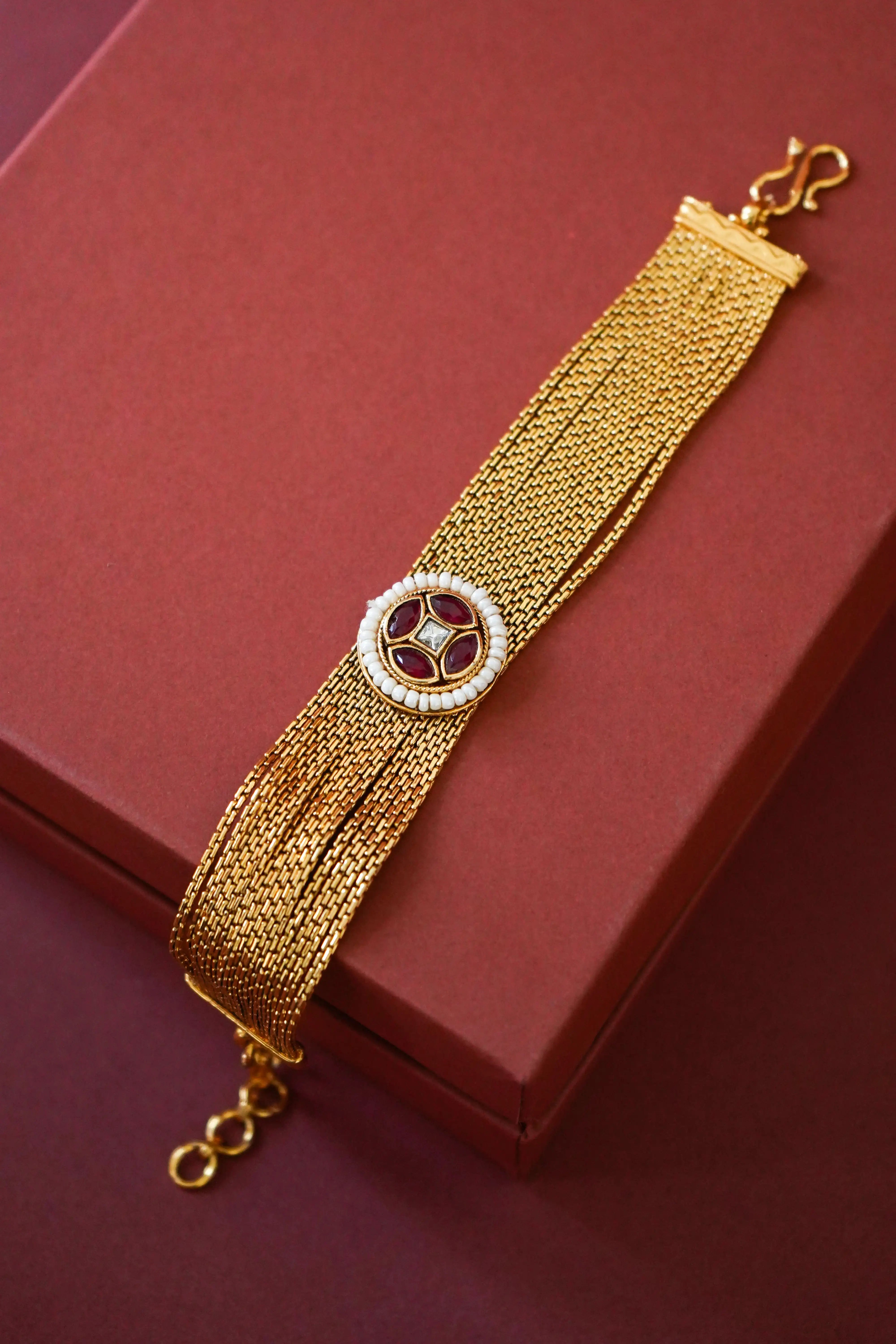 Golden chain bracelet - Red