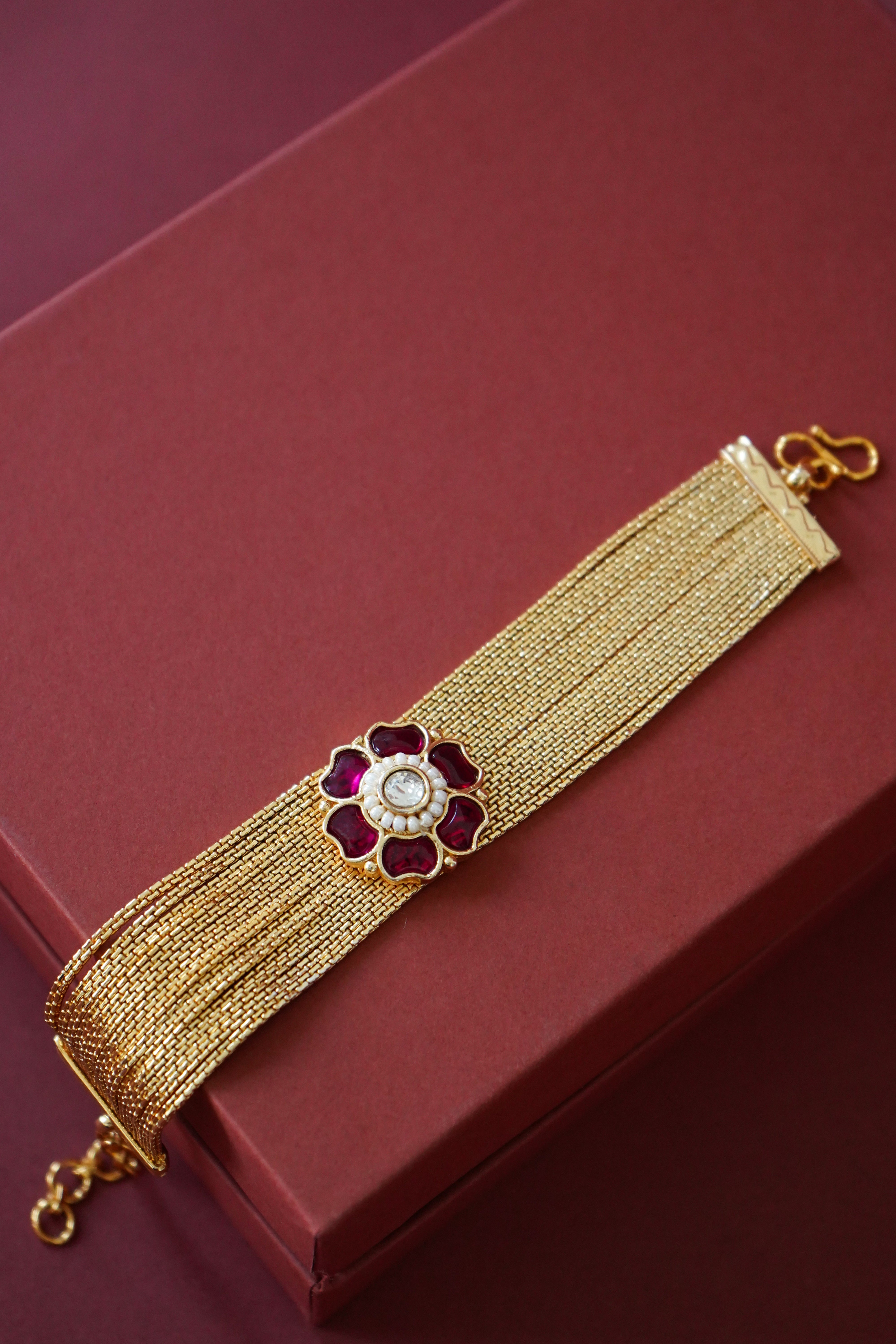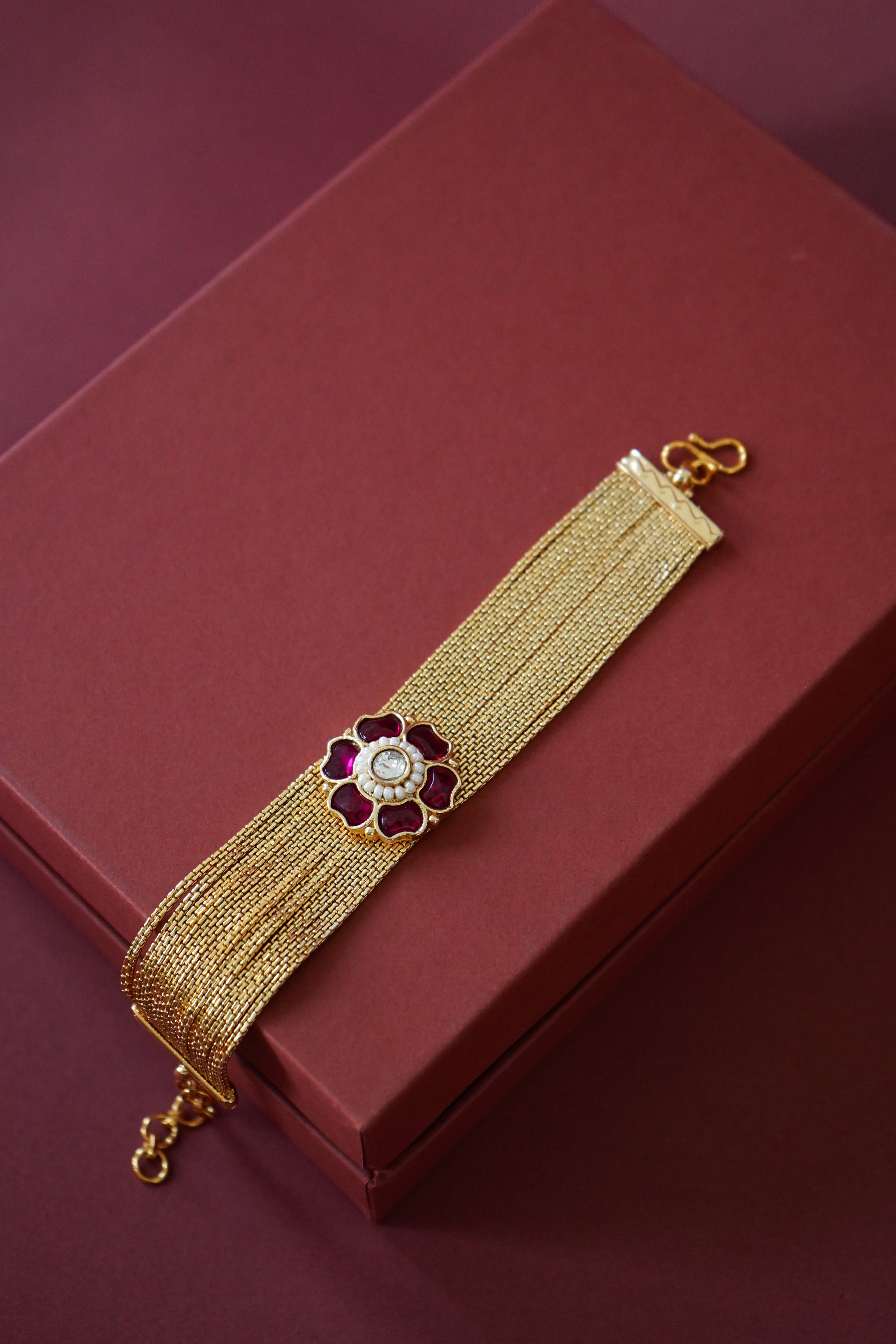 Golden chain bracelet - Red Floral