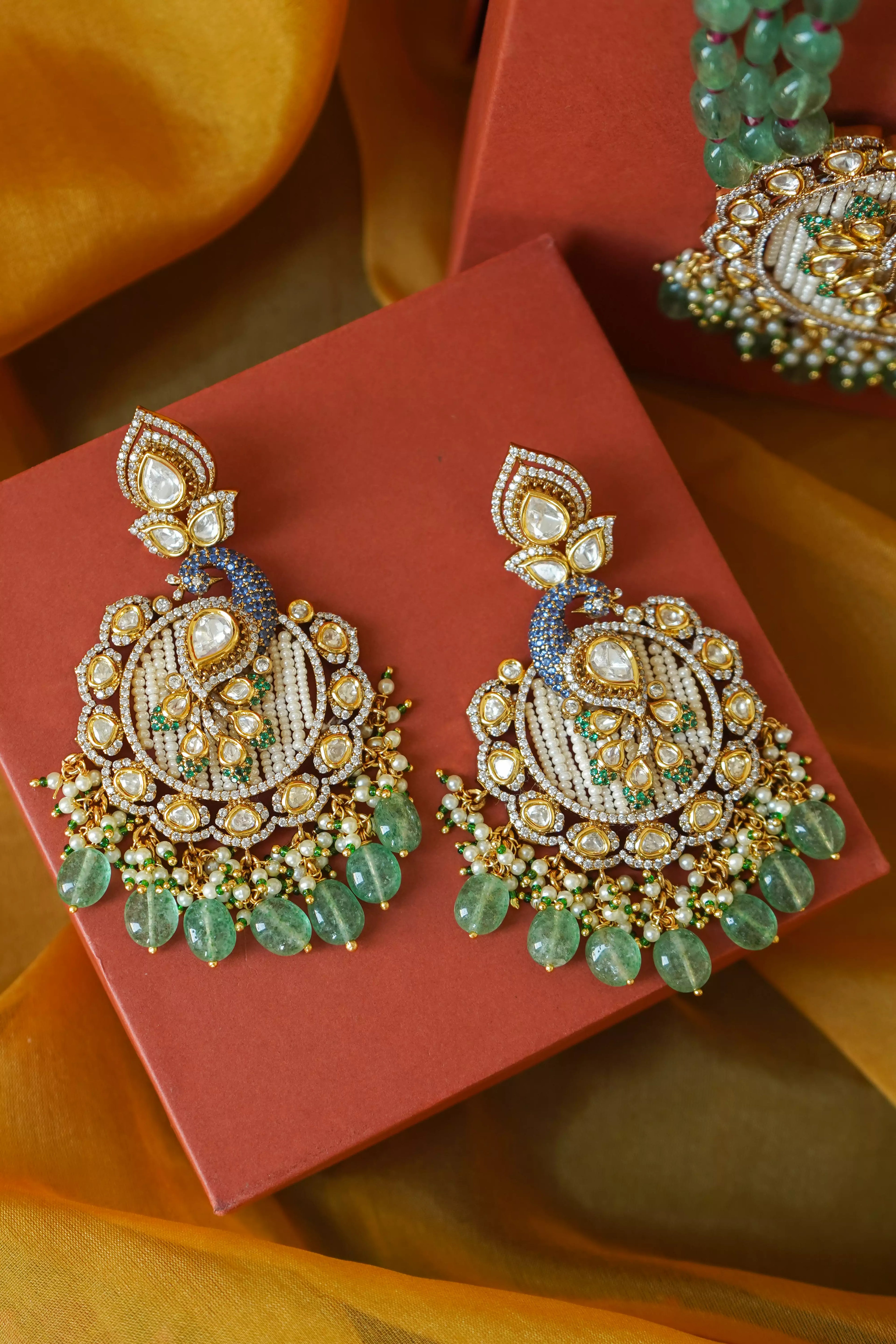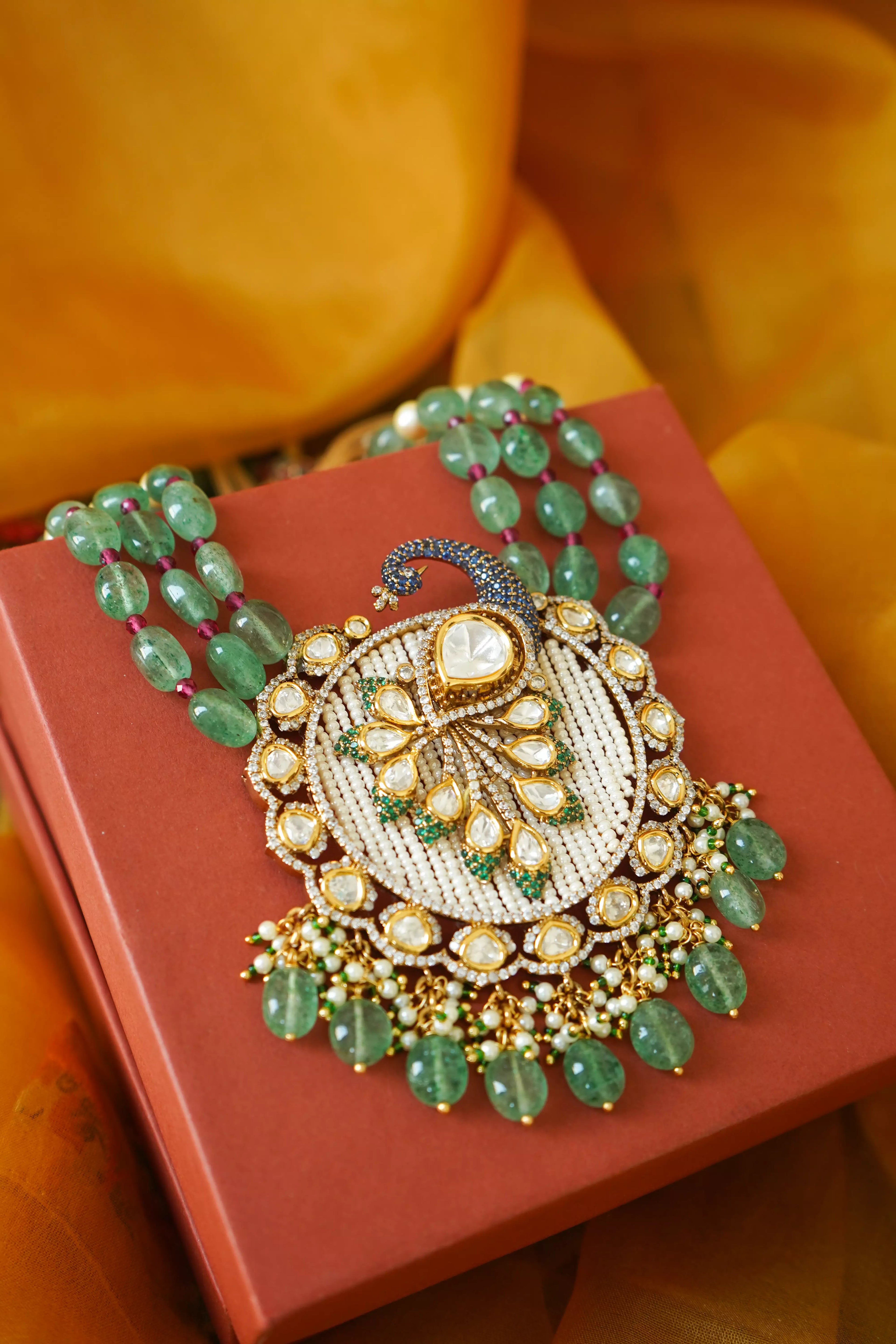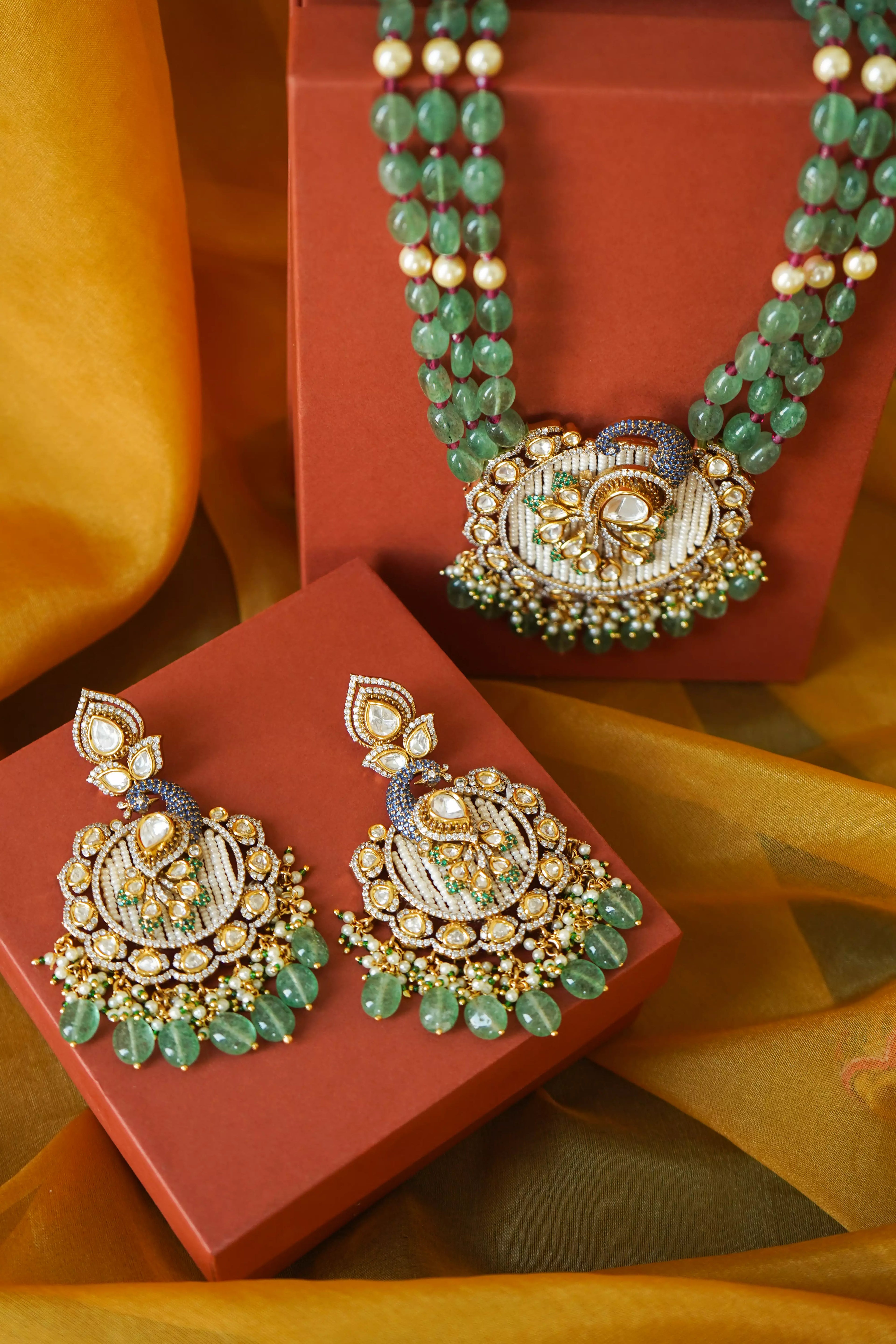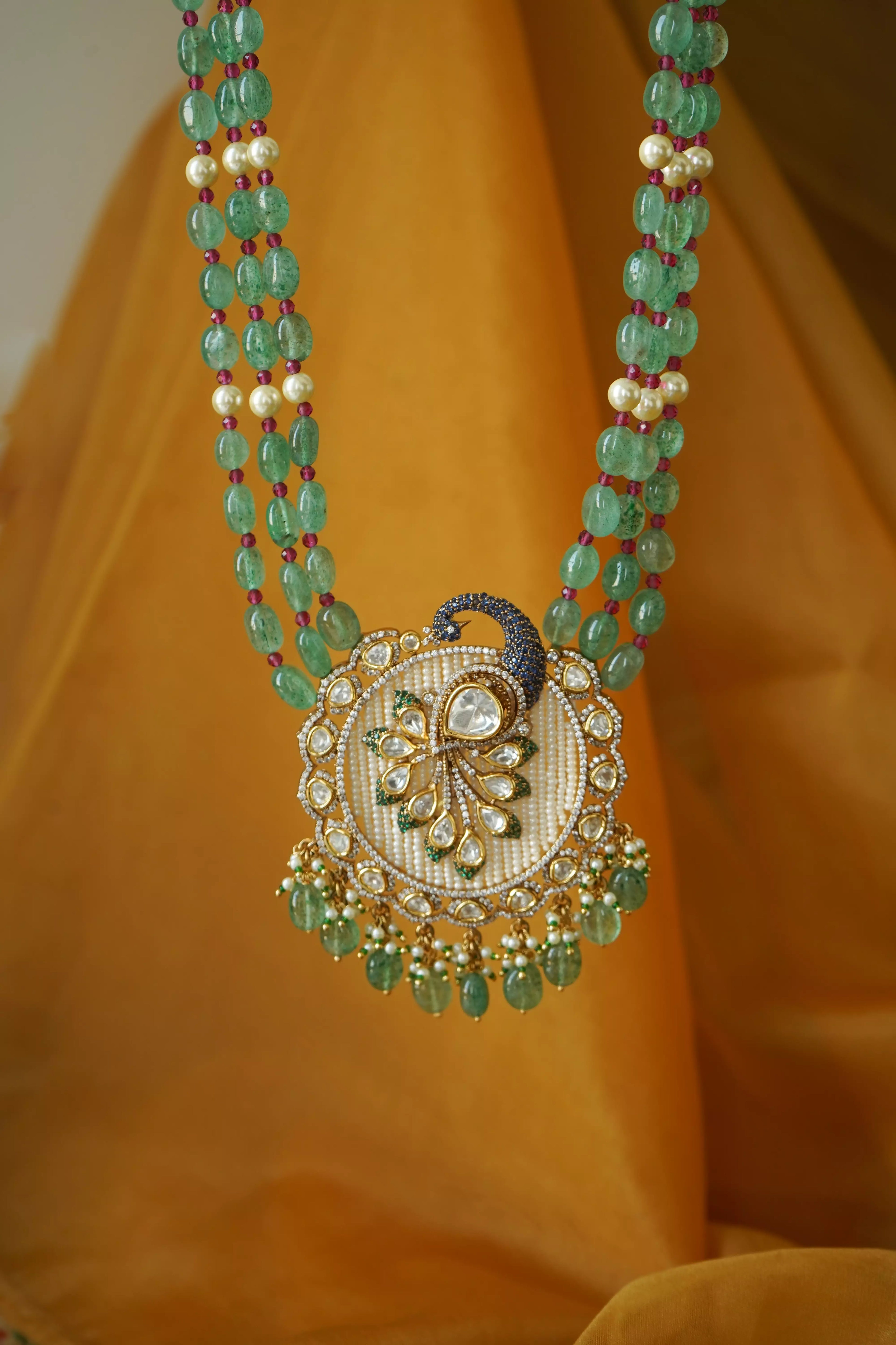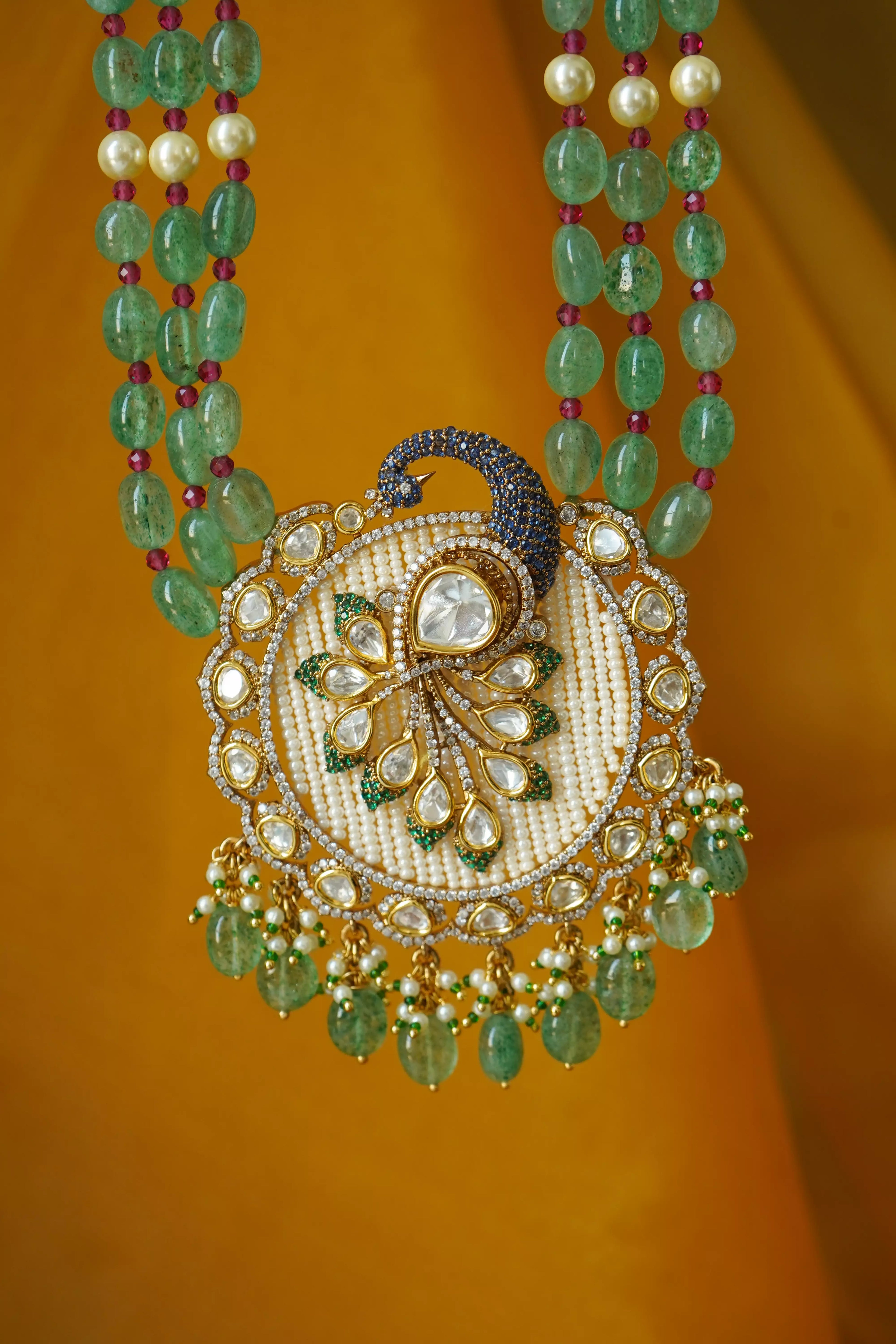Aneri Moissanite Royal Peacock Pearl Pendant Necklace Set