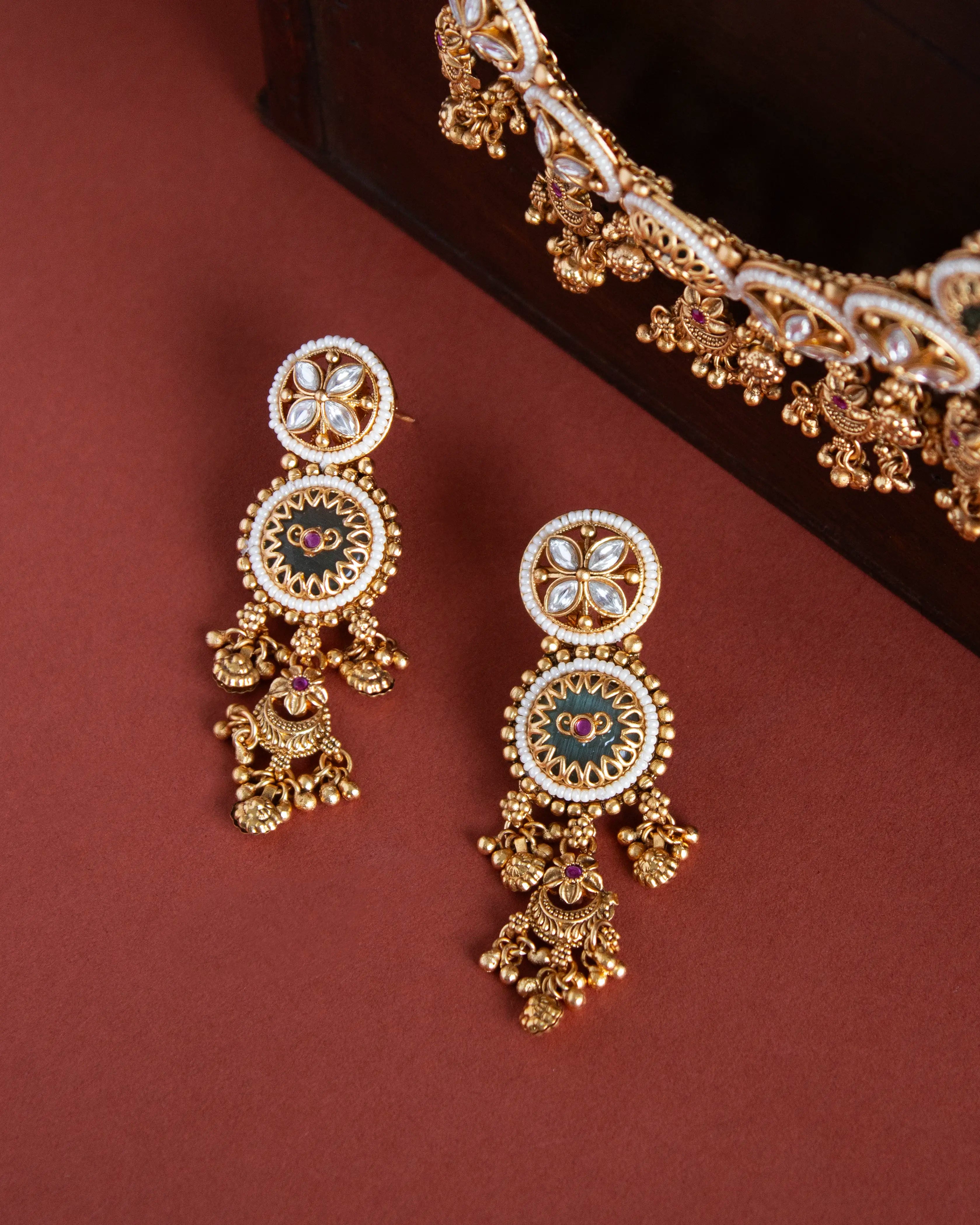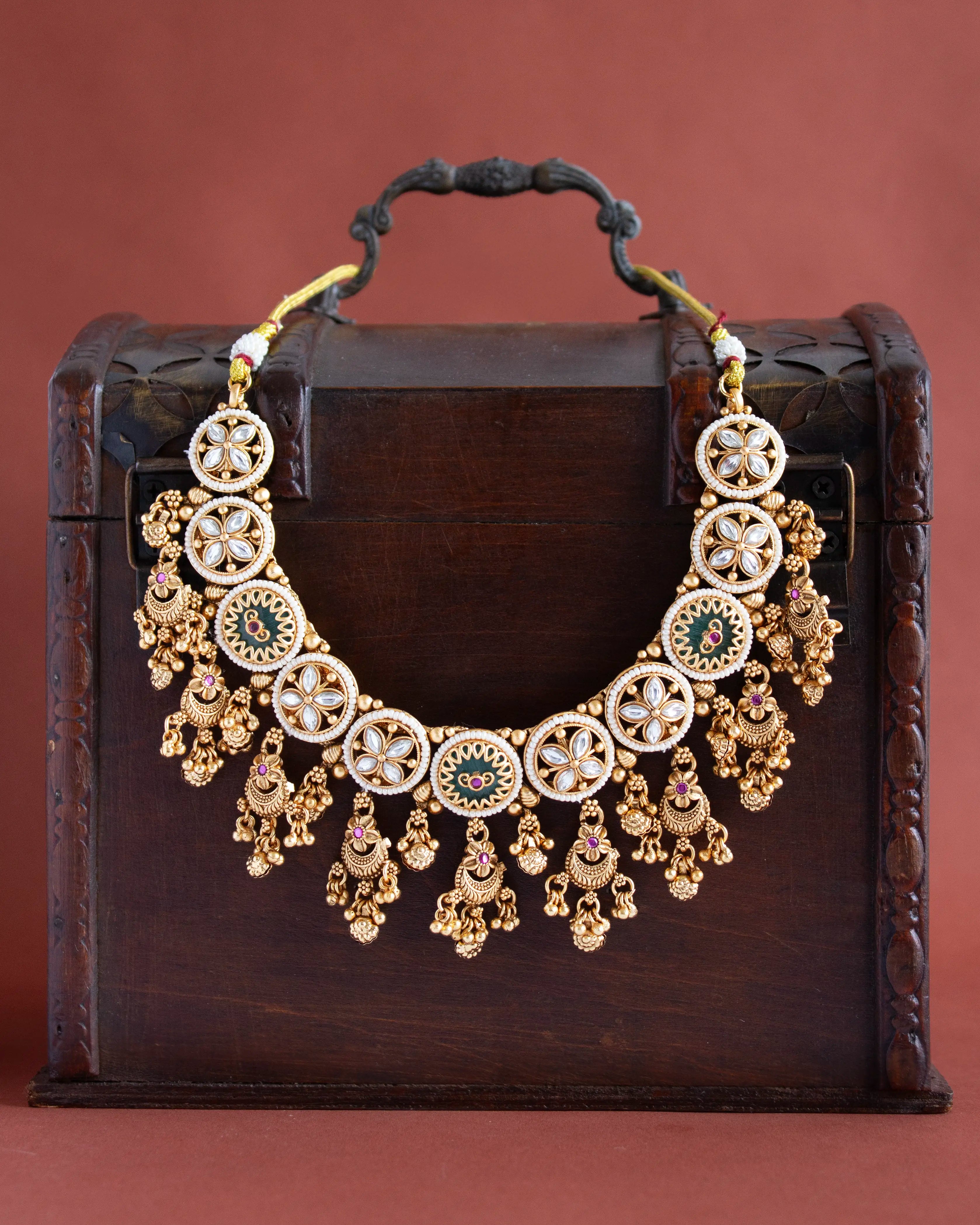 Eshvi Pearl and Mint Antique Necklace Set