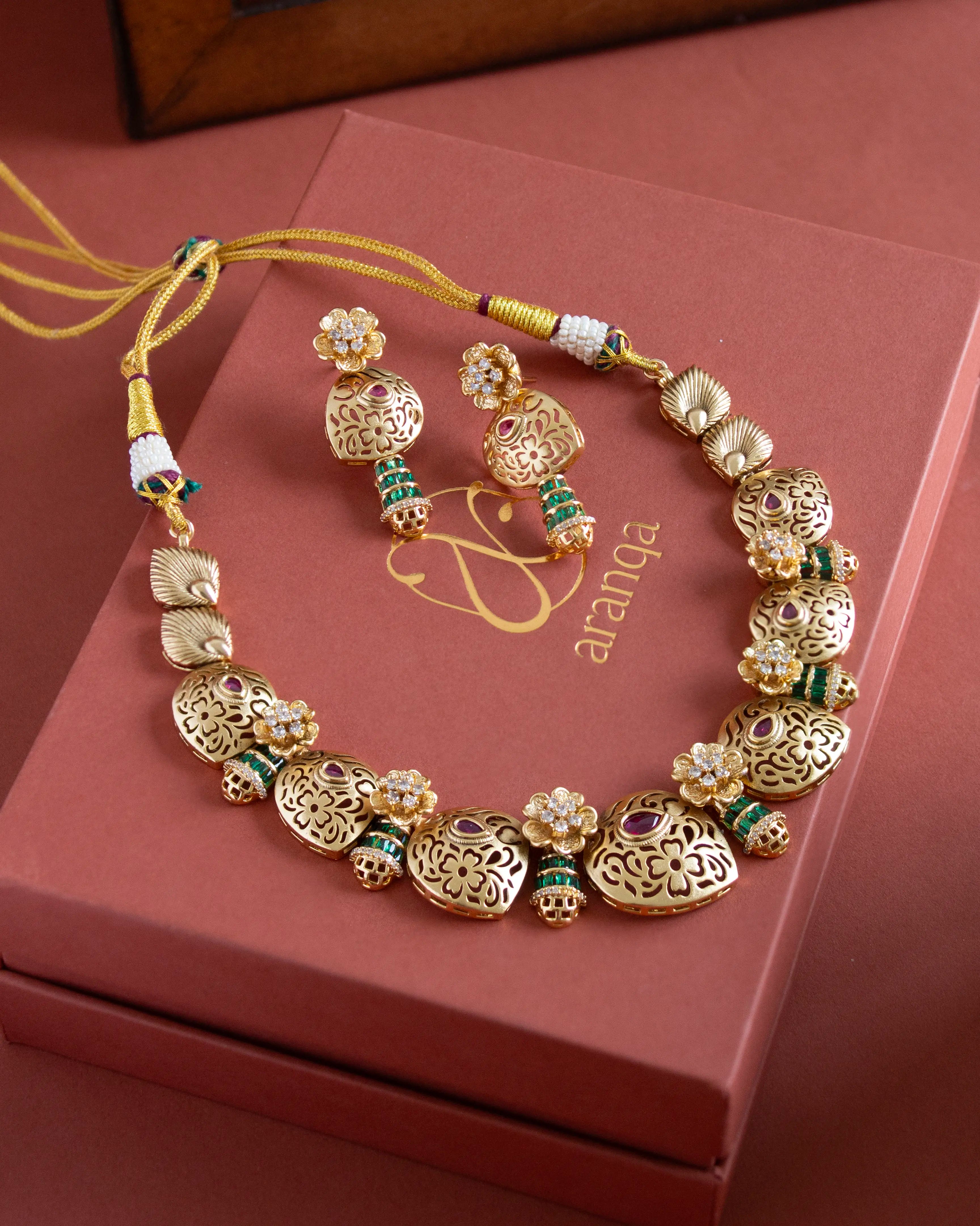 Tivya Gold Engraved Necklace Set