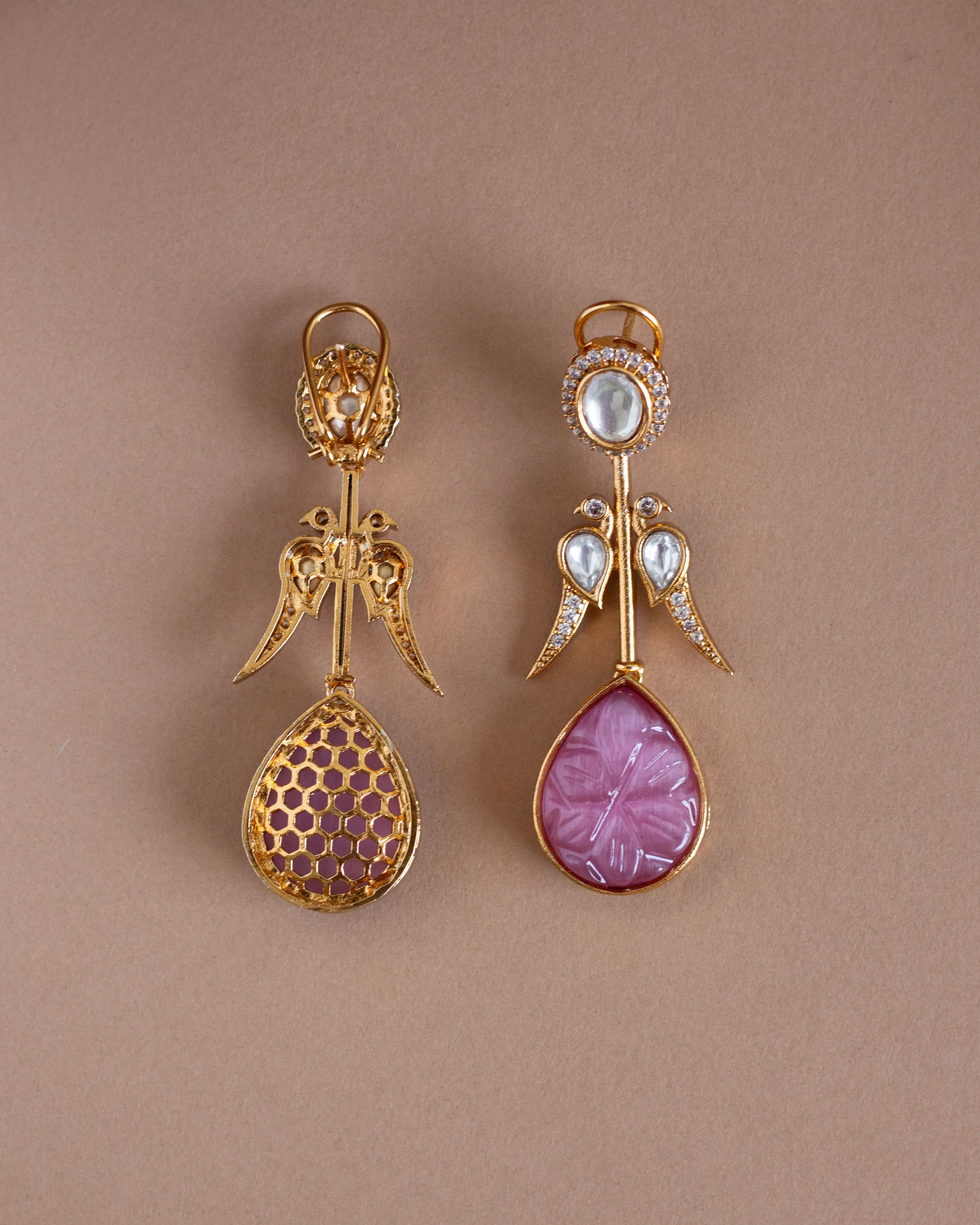 Maya Teardrop Antique Earrings - Pink