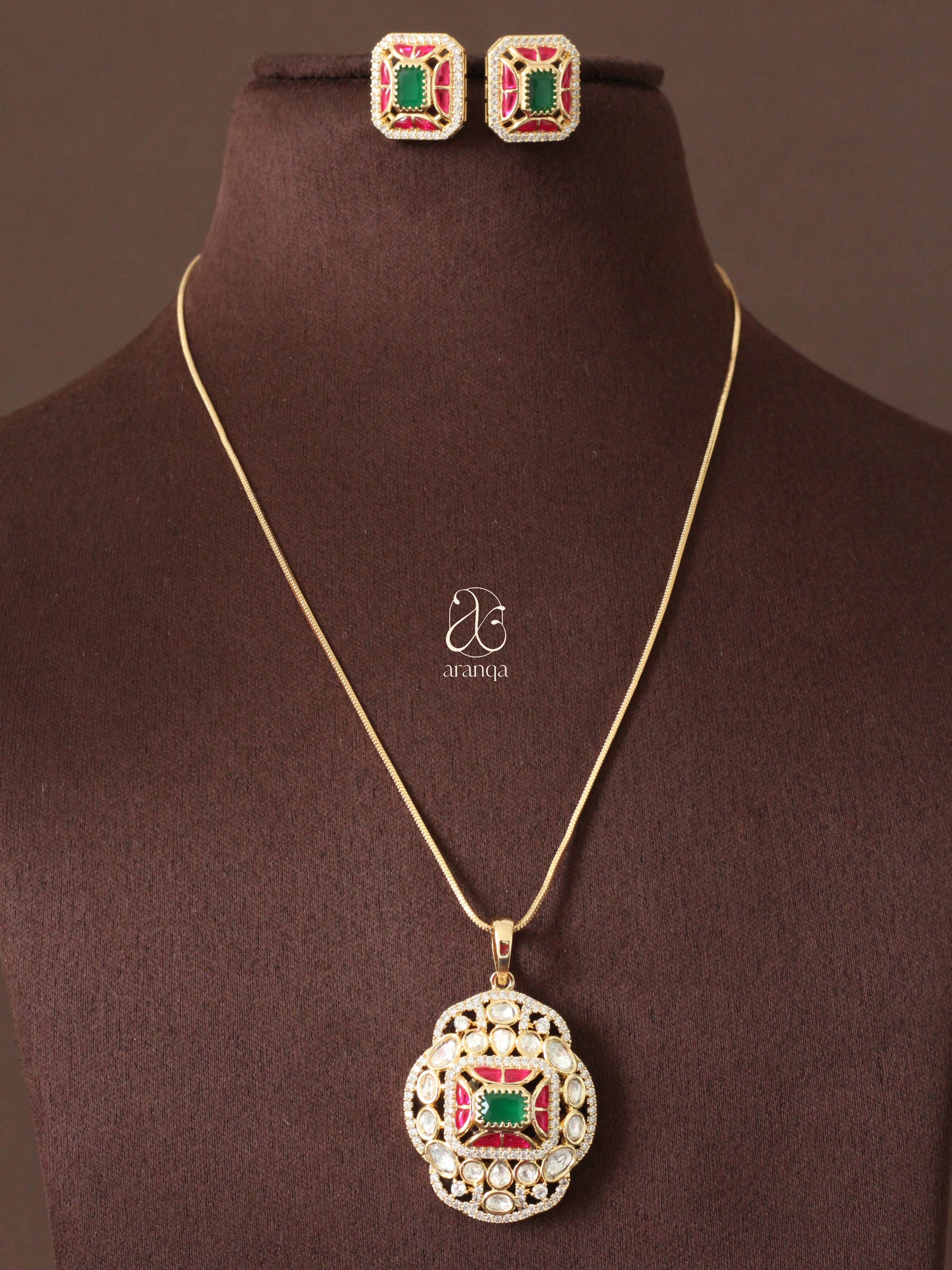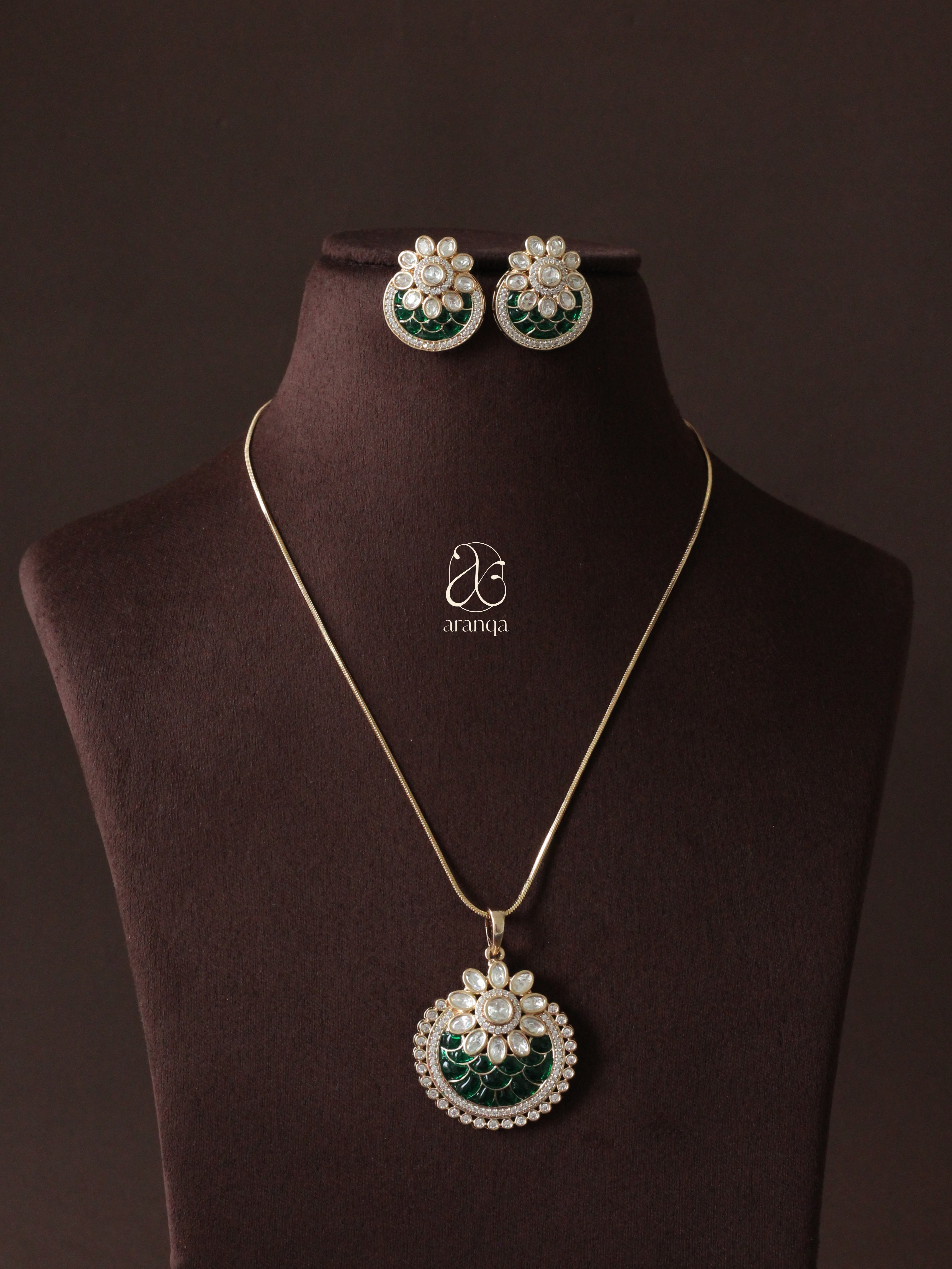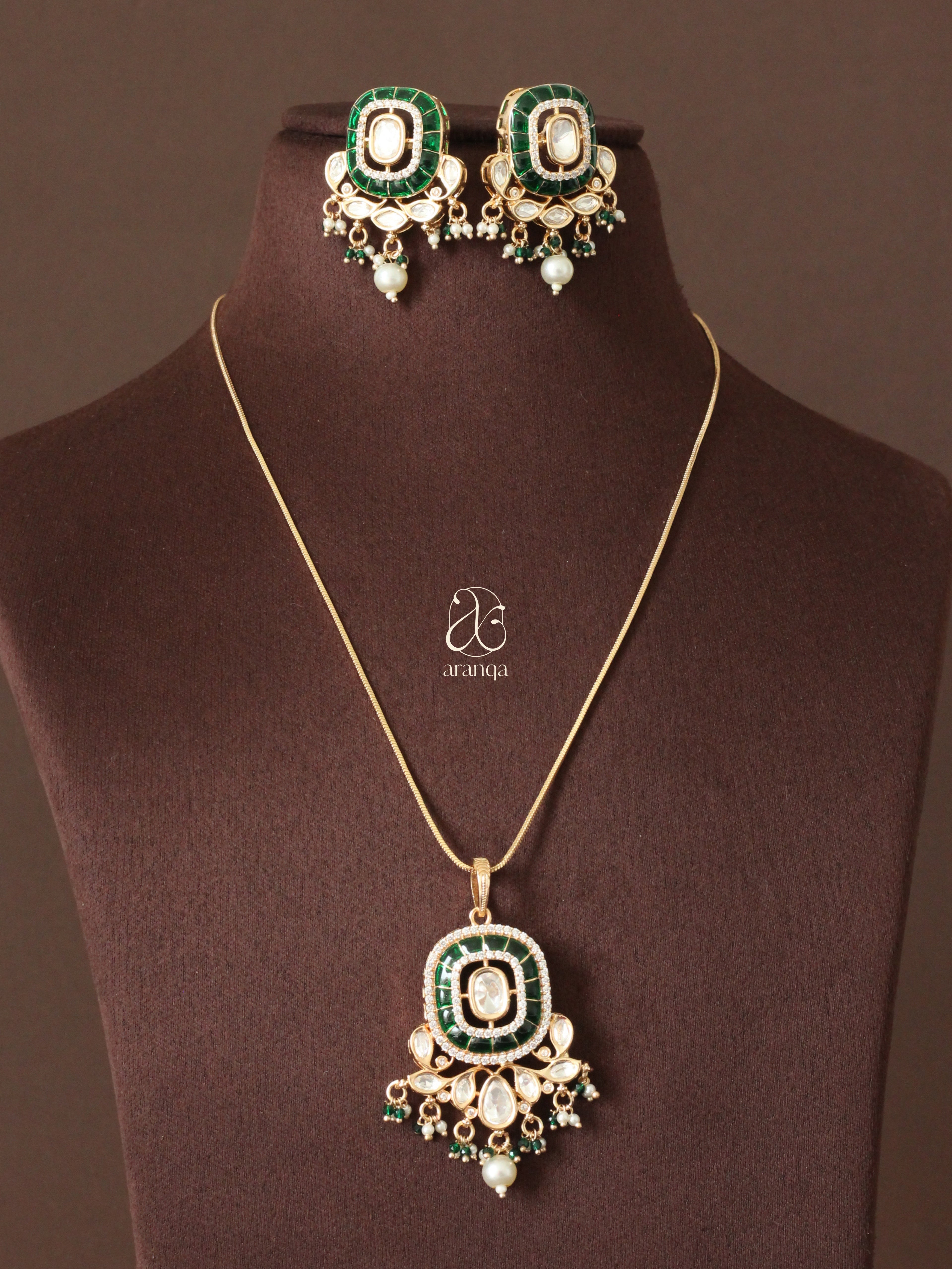 Fiza Emerald Moissanite Pendant Set