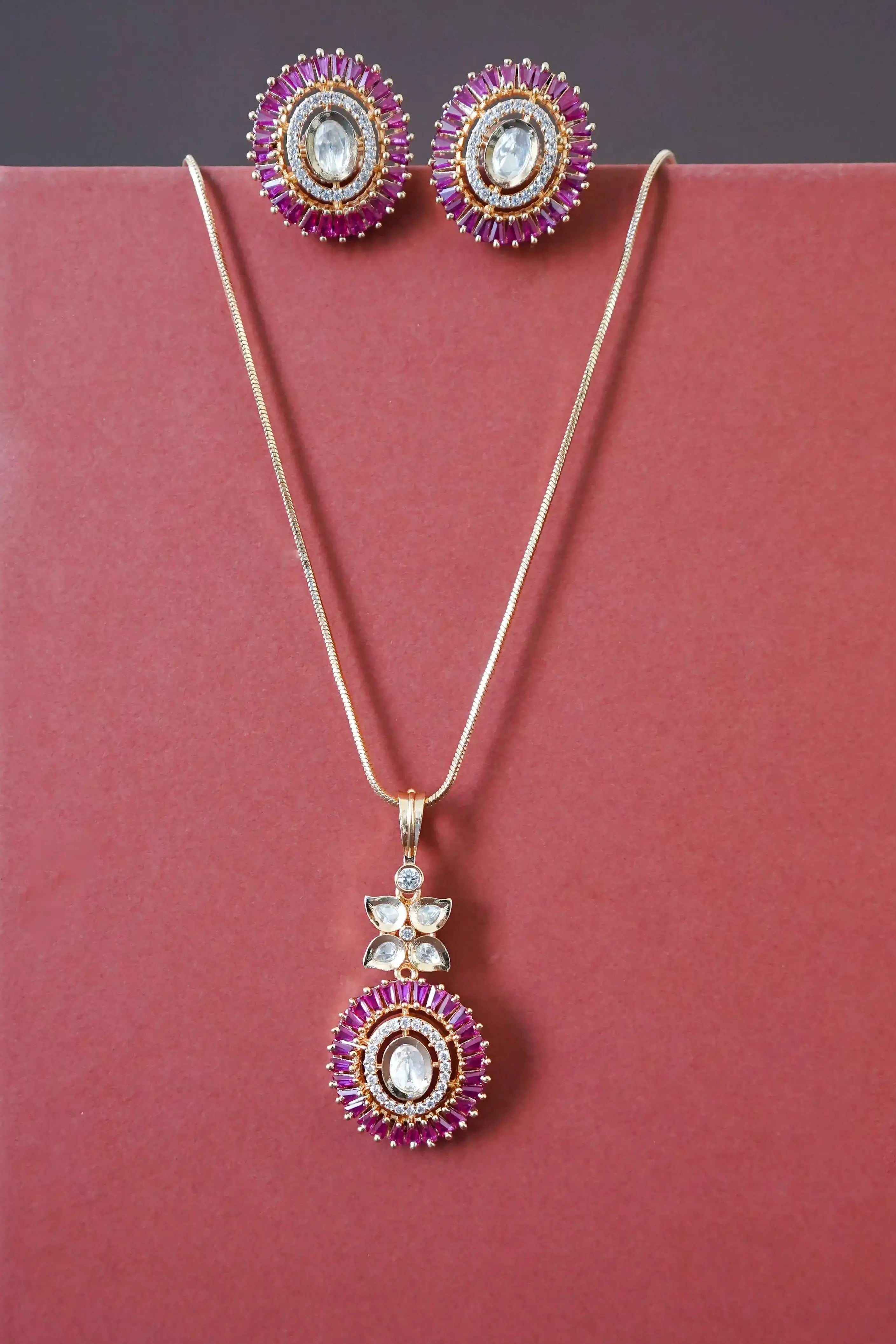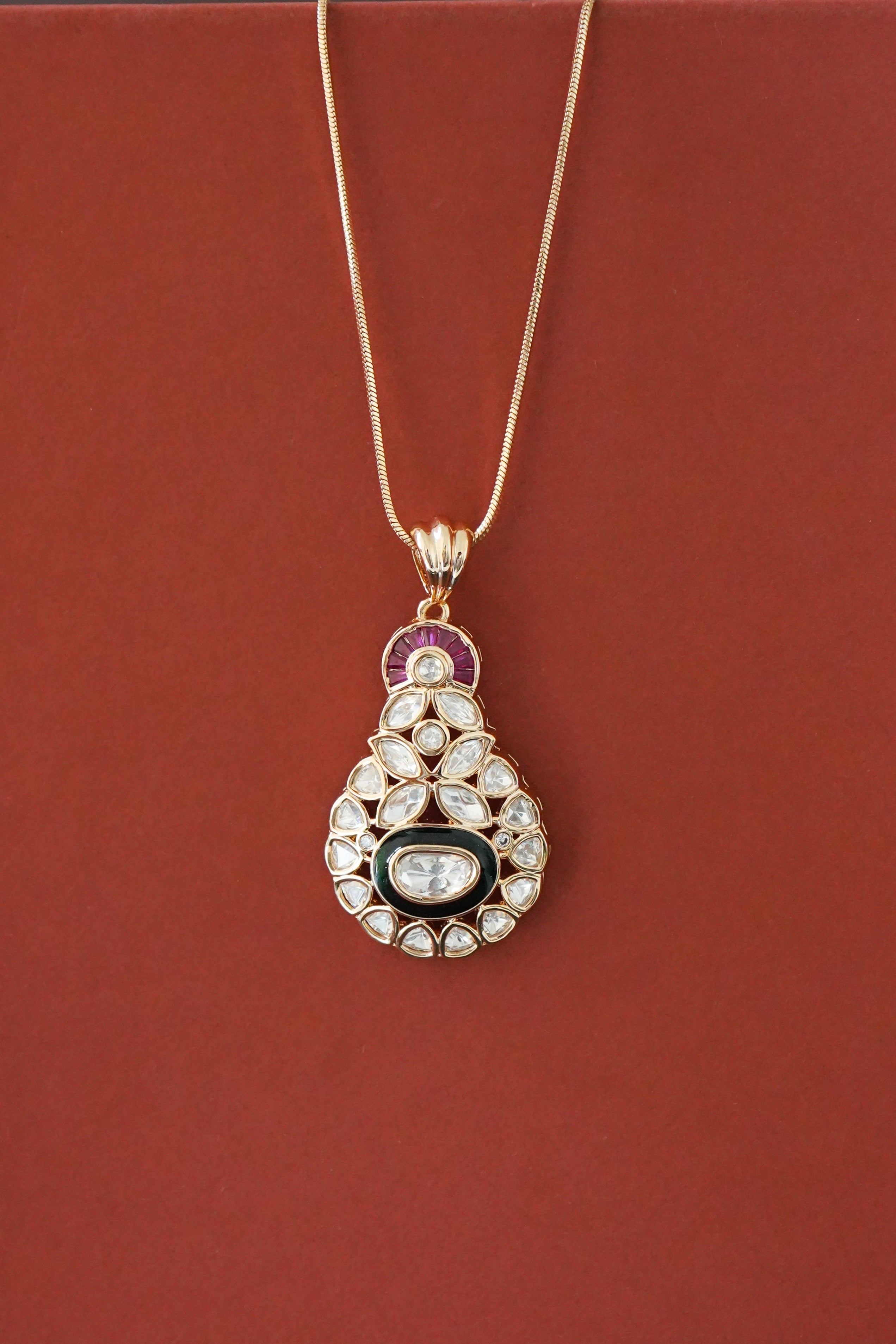 Usha Kundan Meenakari Pendant Set- Ruby