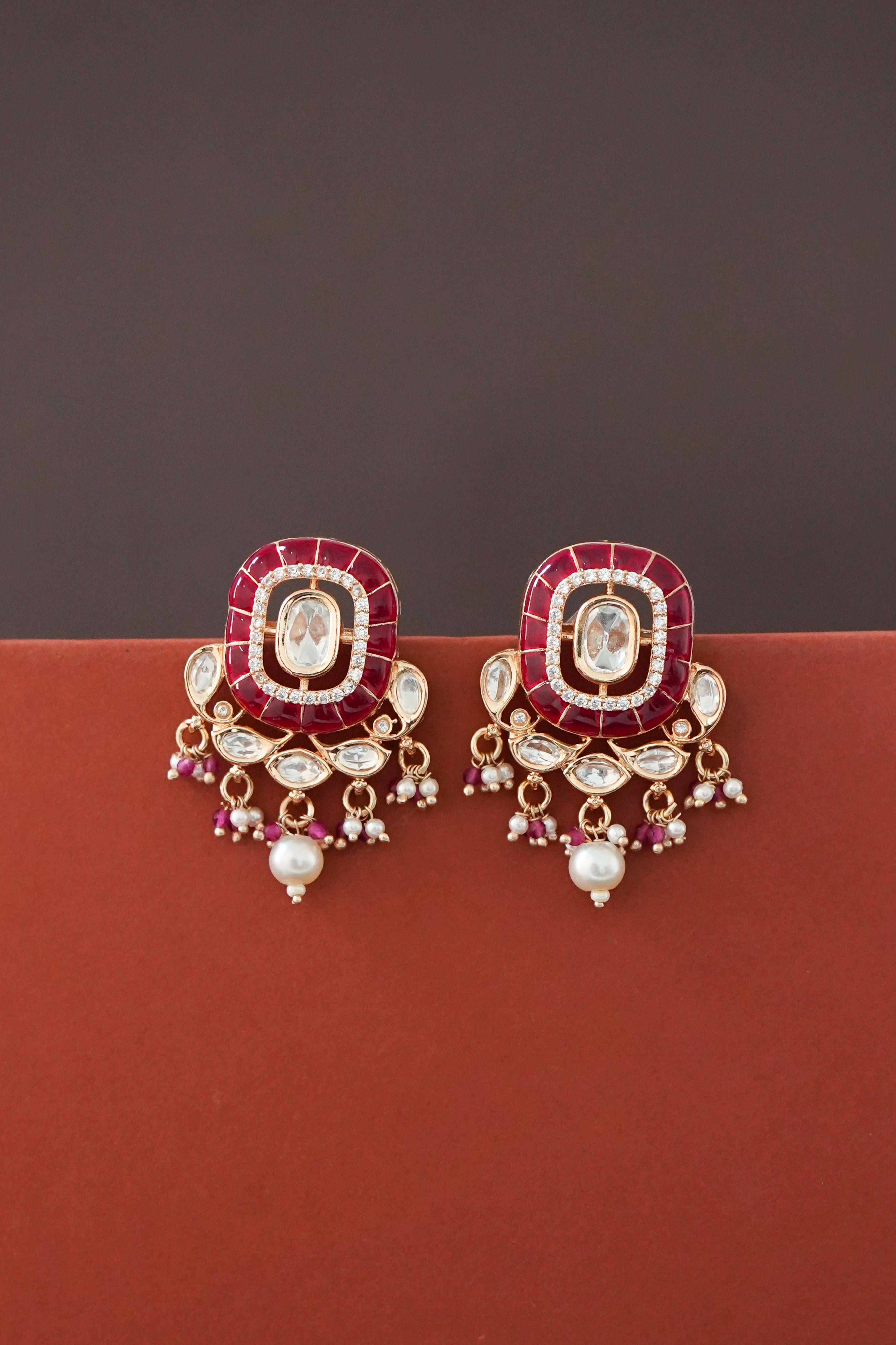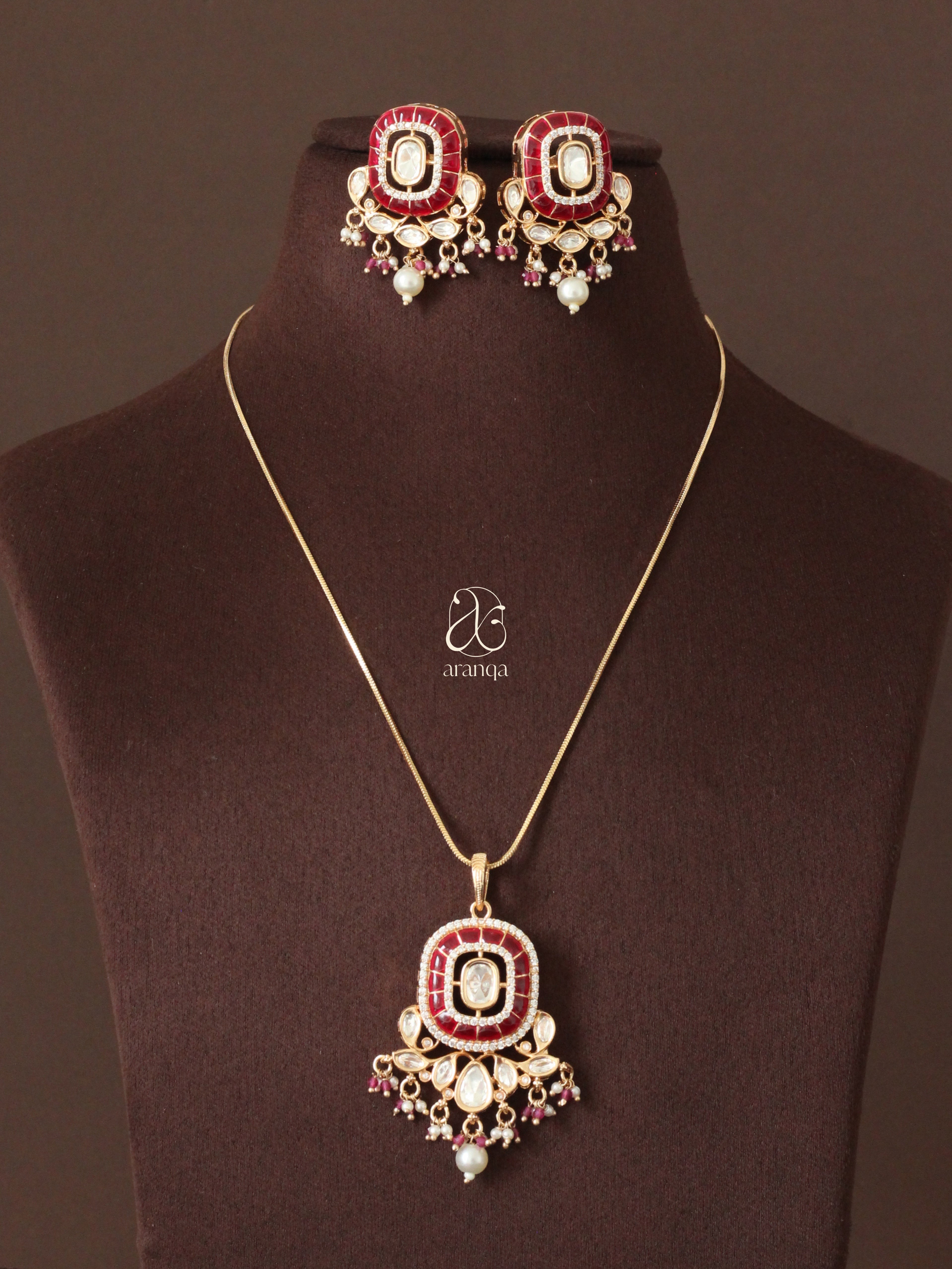Yashvi Meenakari Kundan Pendant Set- Ruby