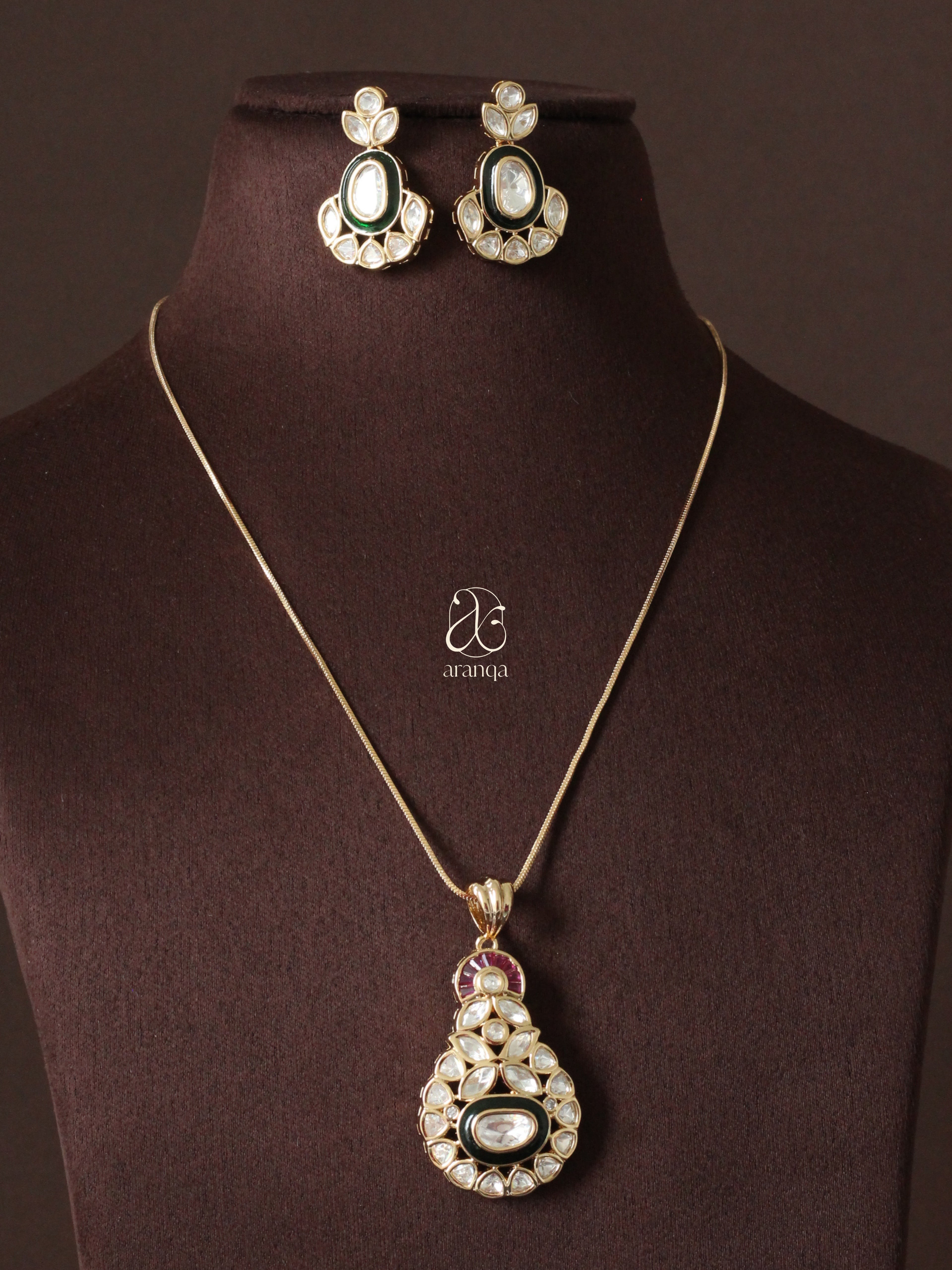 Palak Kundan Pendant Set