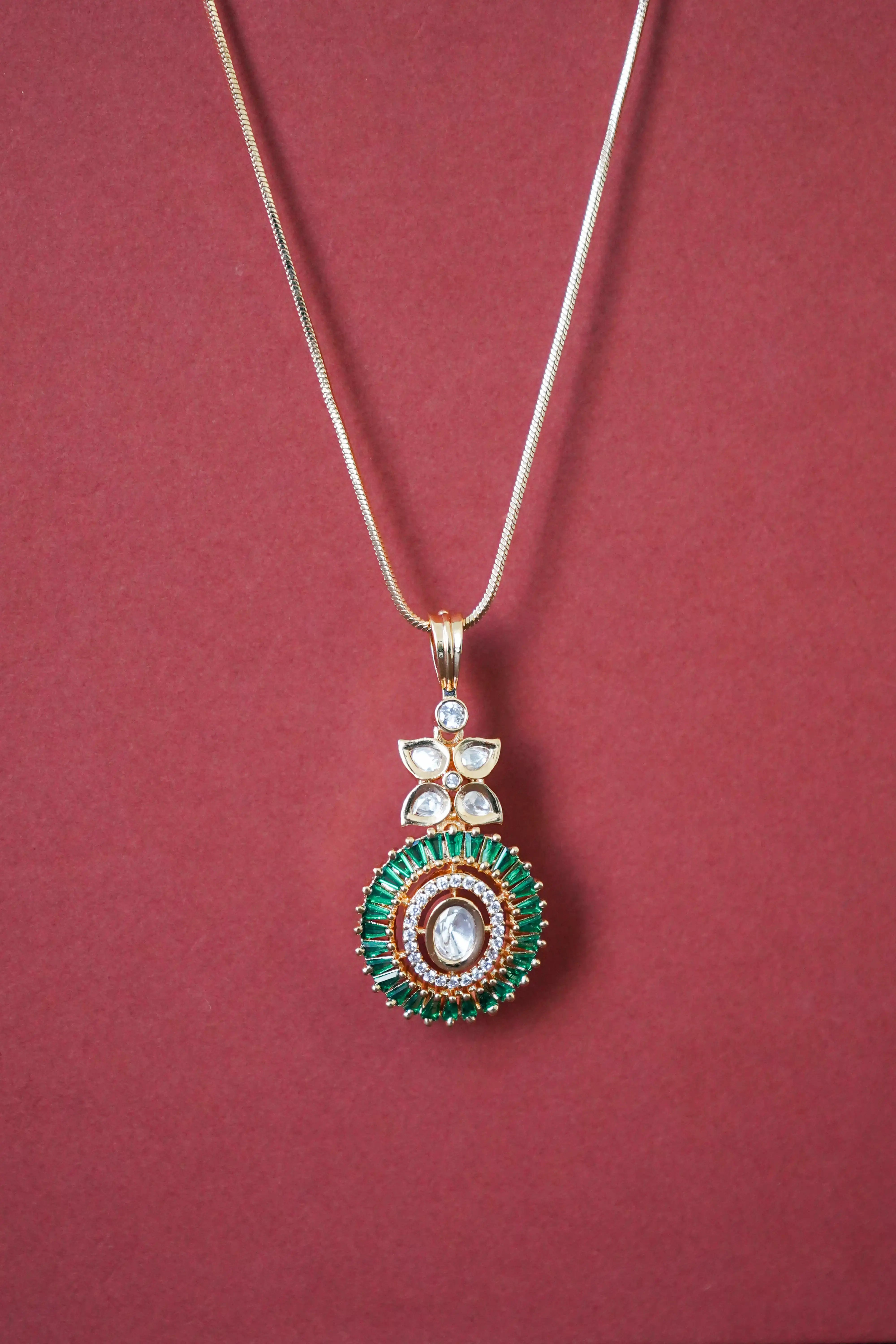 Dayita Kundan Pendant Chain Set - Emerald