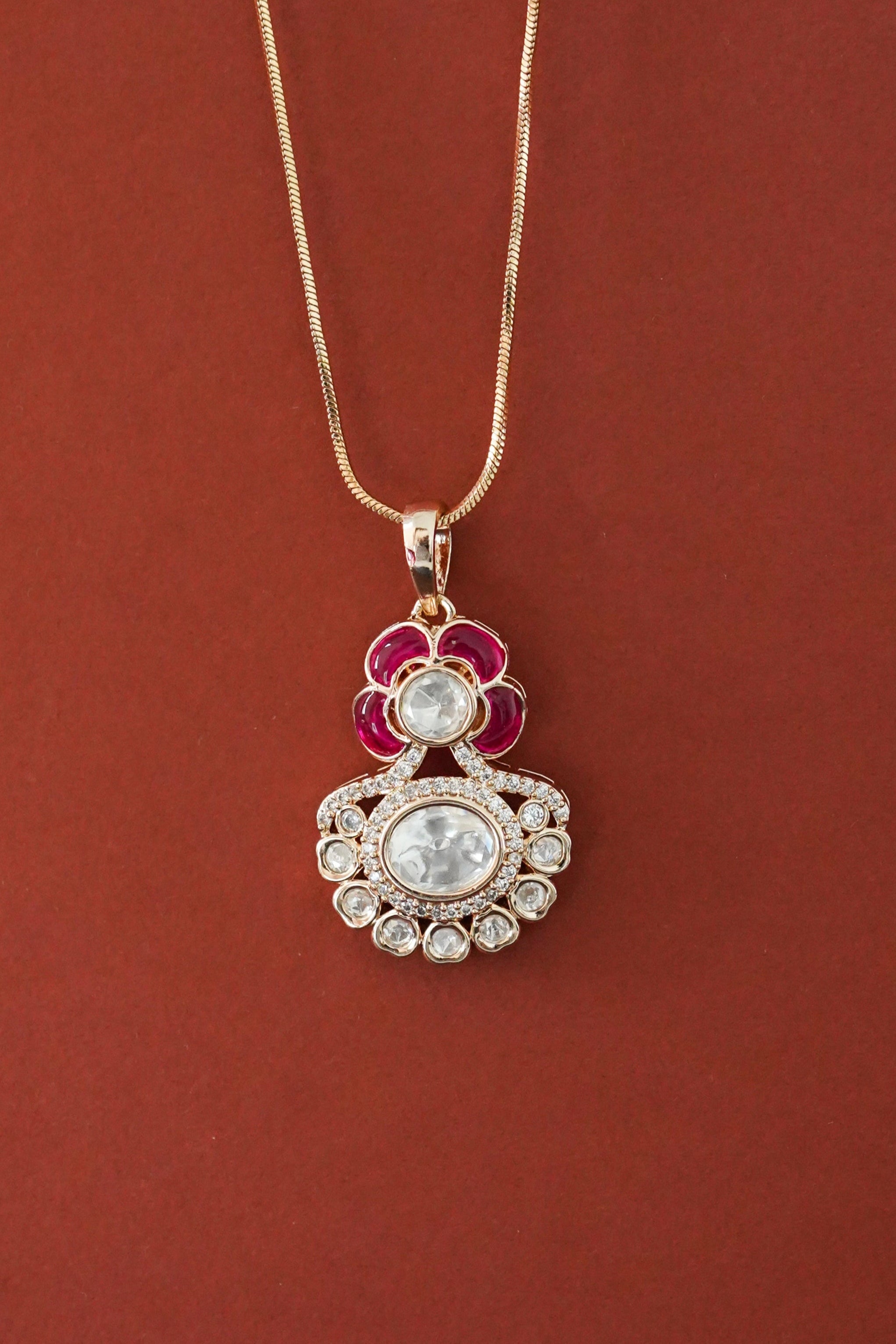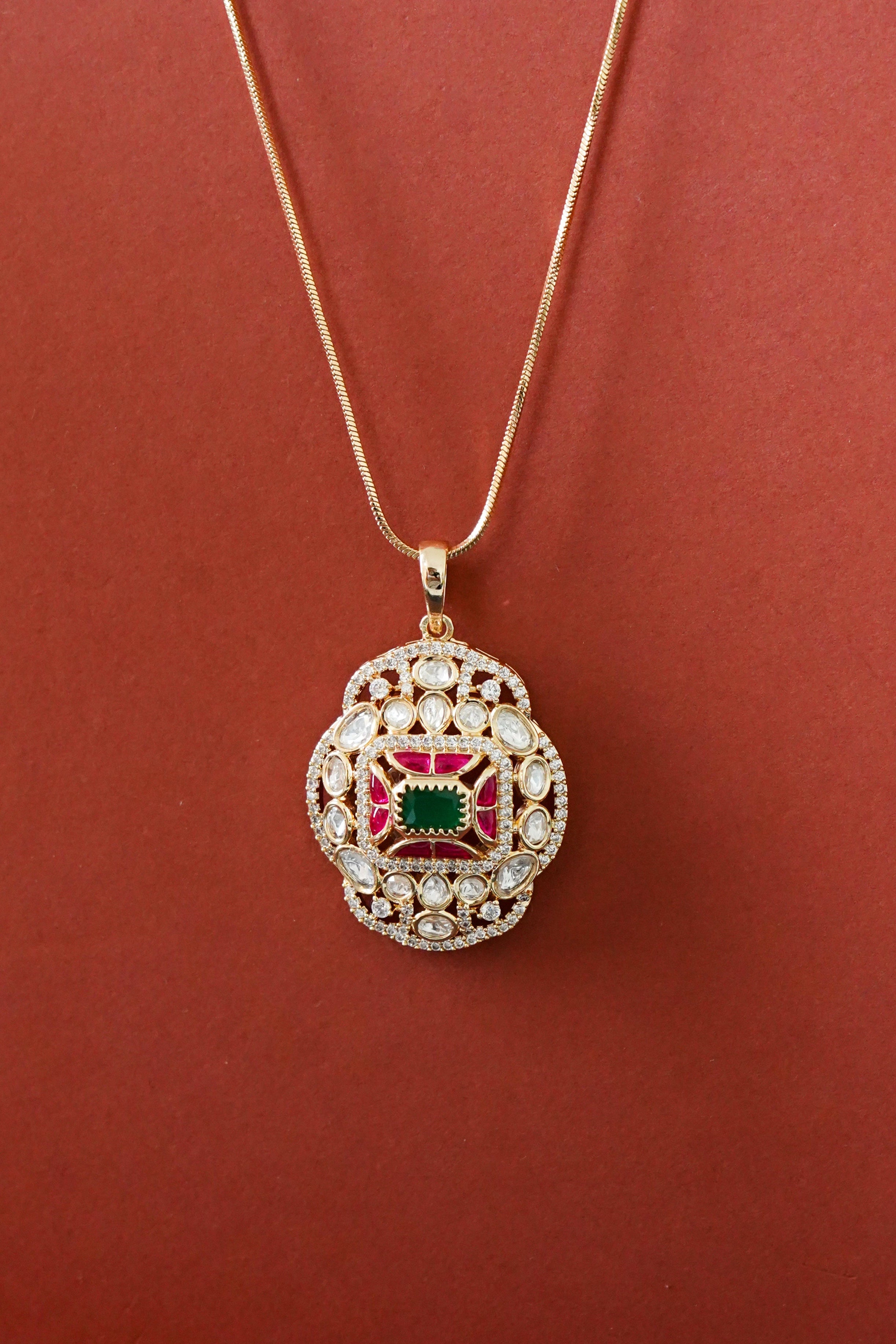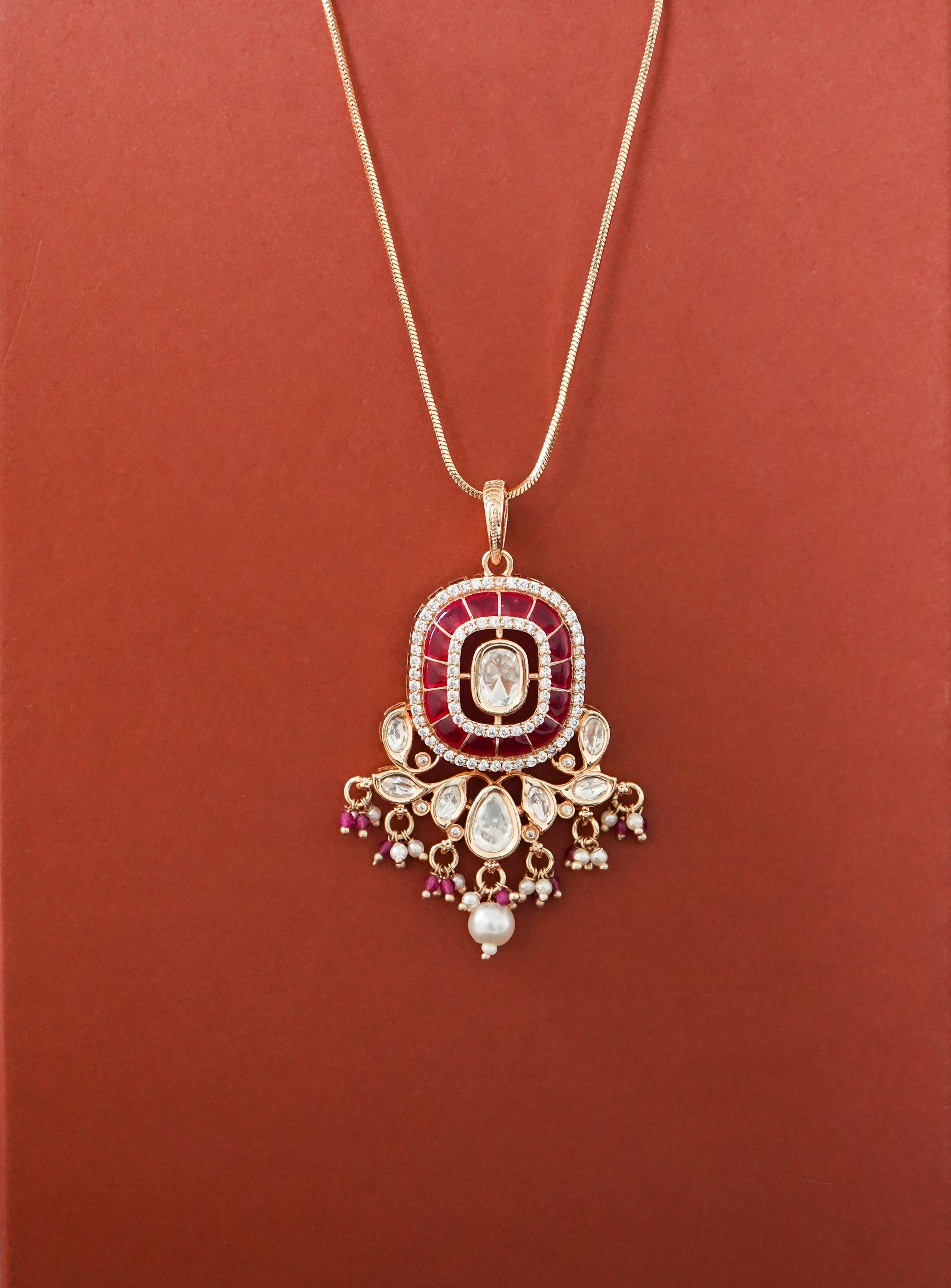 Dayita Kundan Pendant Chain Set - Ruby