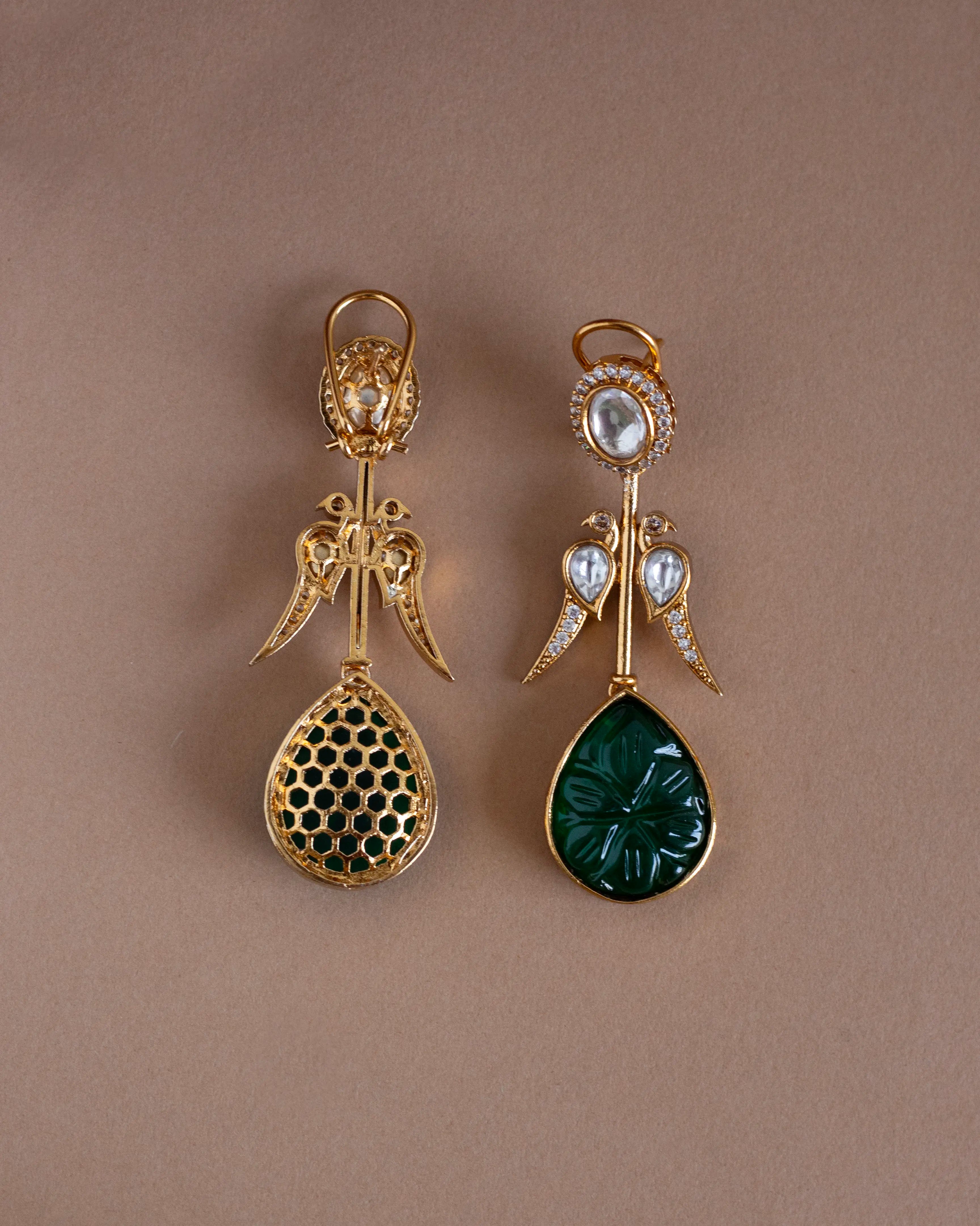 Maya Teardrop Antique Earrings- Emerald