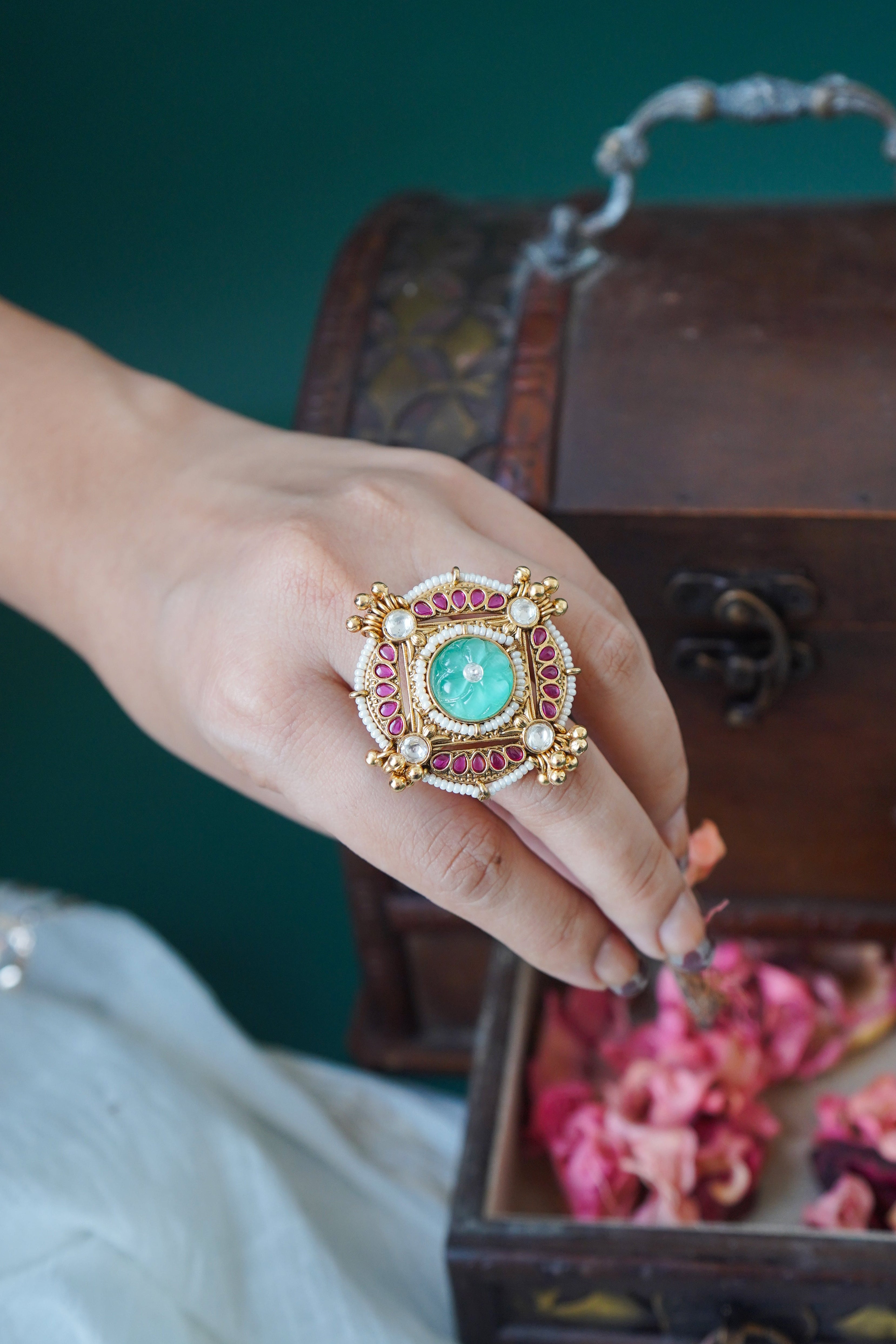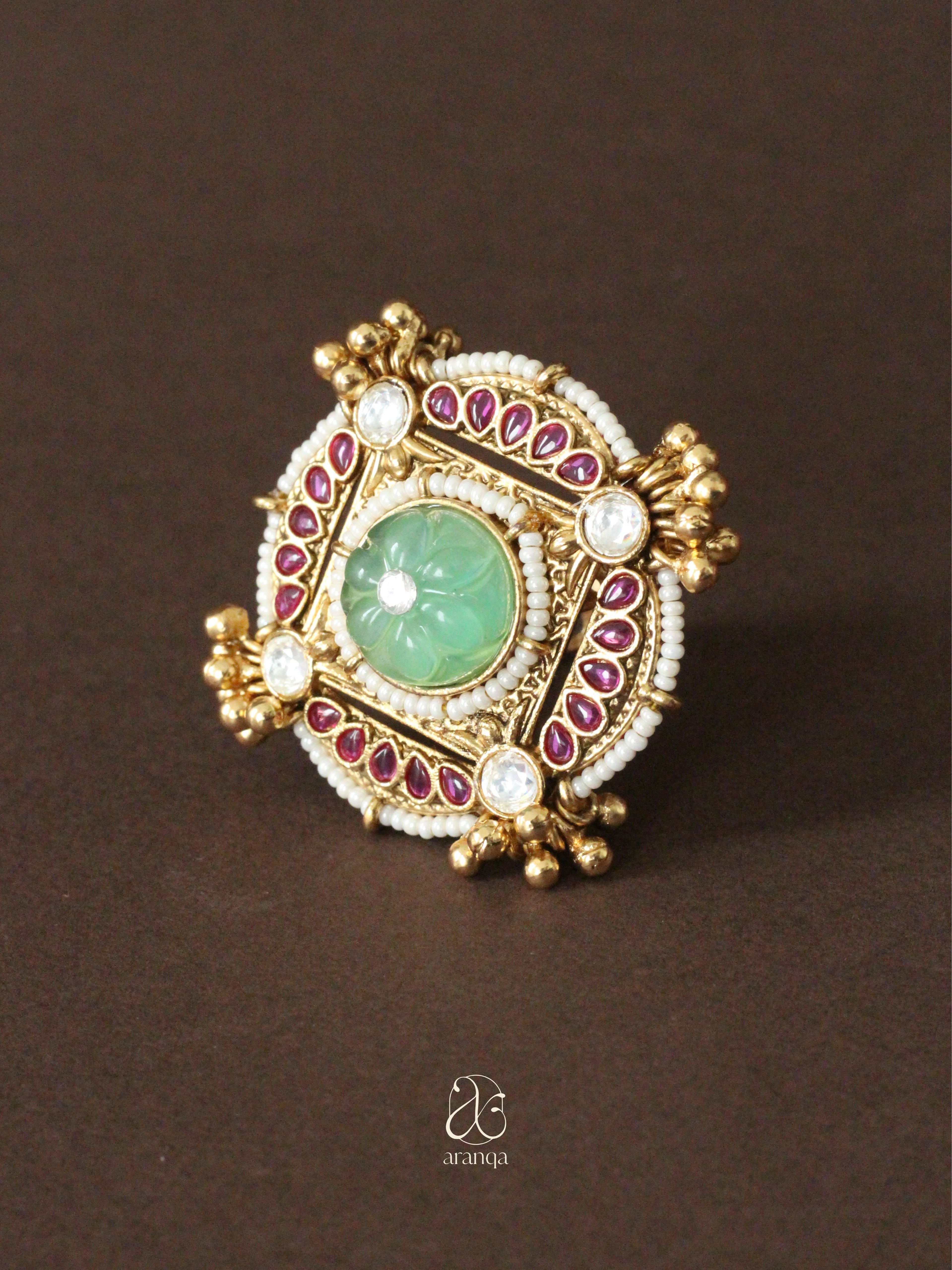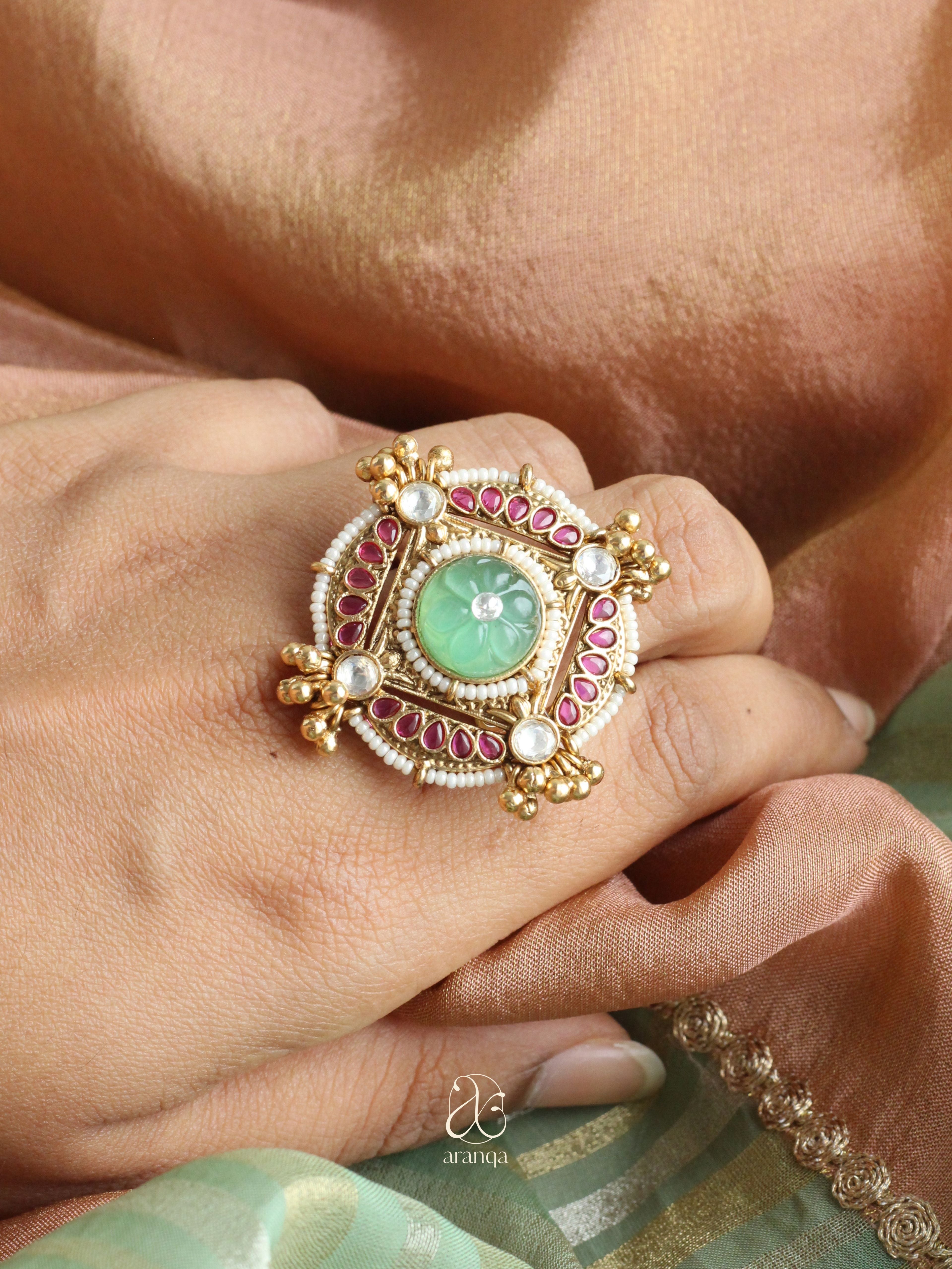 Manika Polki Kundan Adjustable Ring - Green