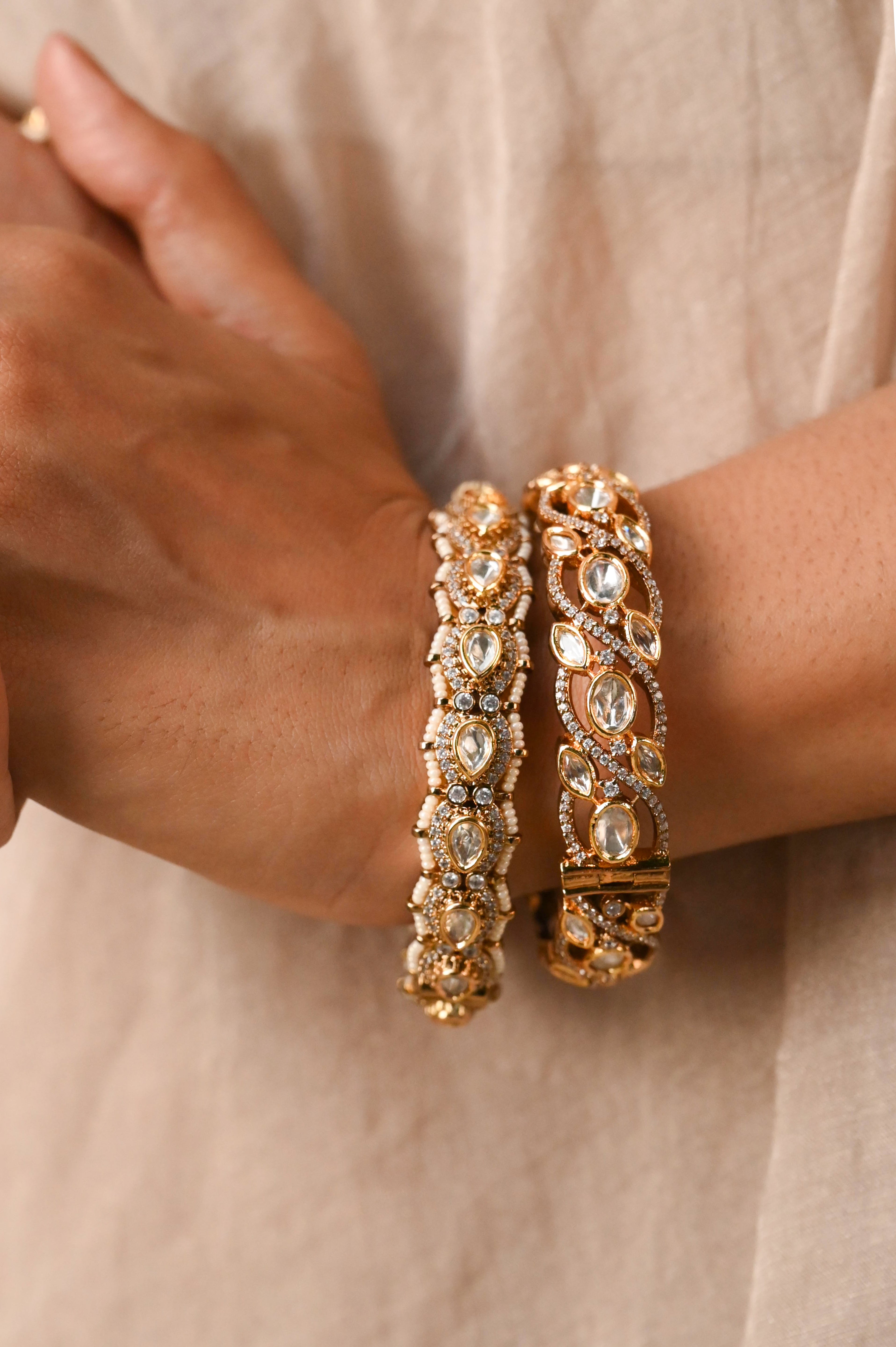 Aarvika Polki Kundan Openable Bangle- Set of 2