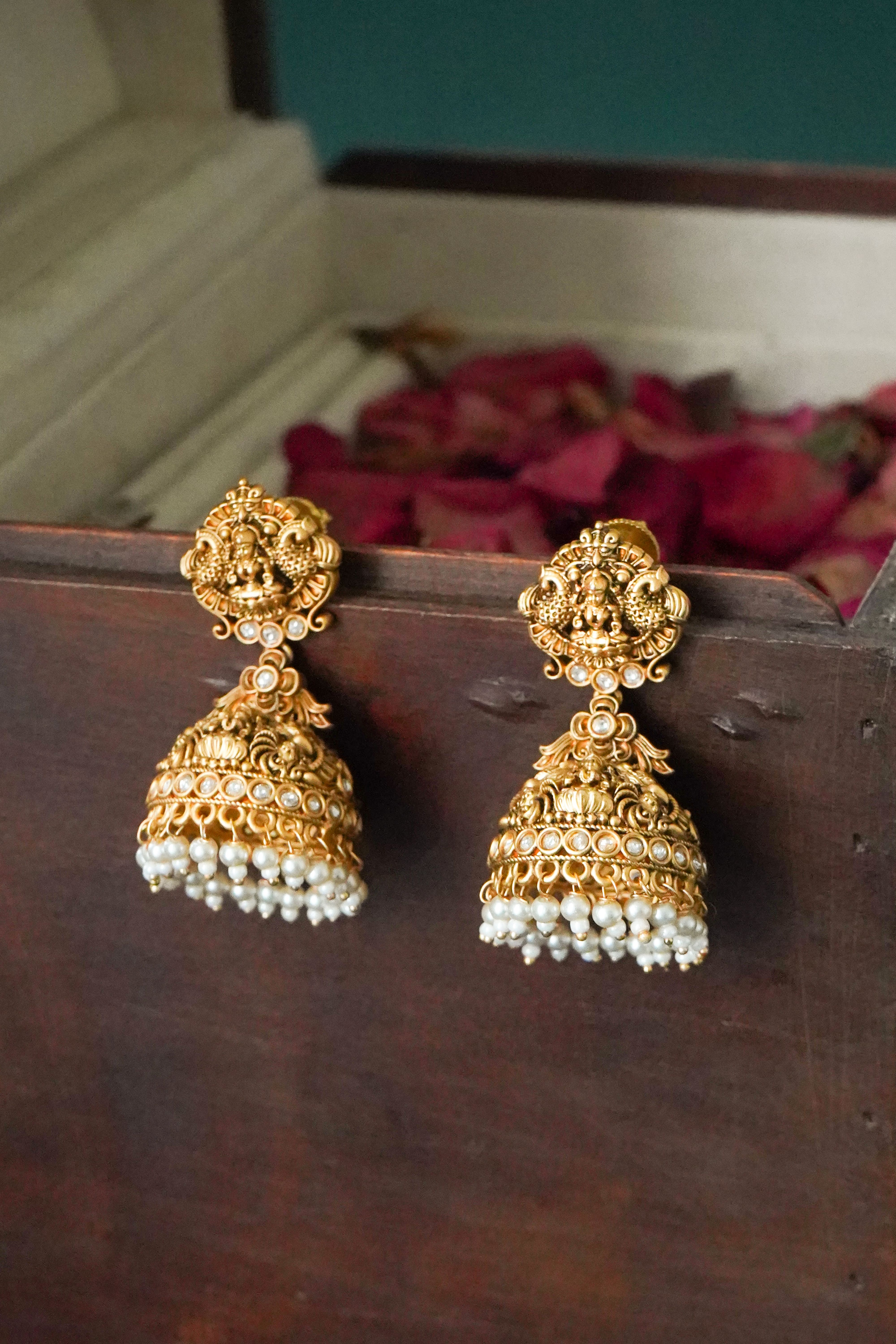 Lavika Temple Gold Jhumka - Ruby