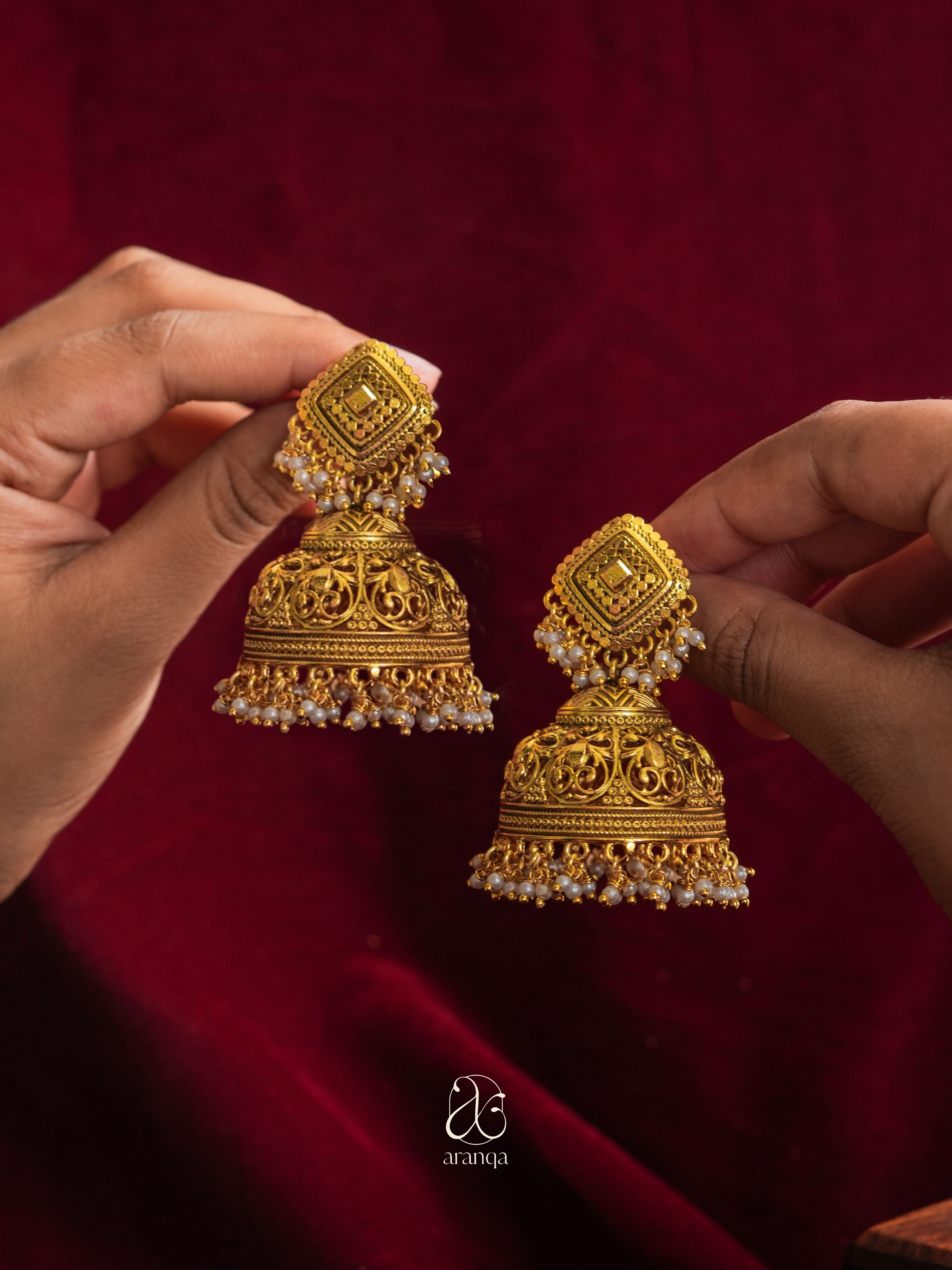 Malini Gold Filigree Jhumkas